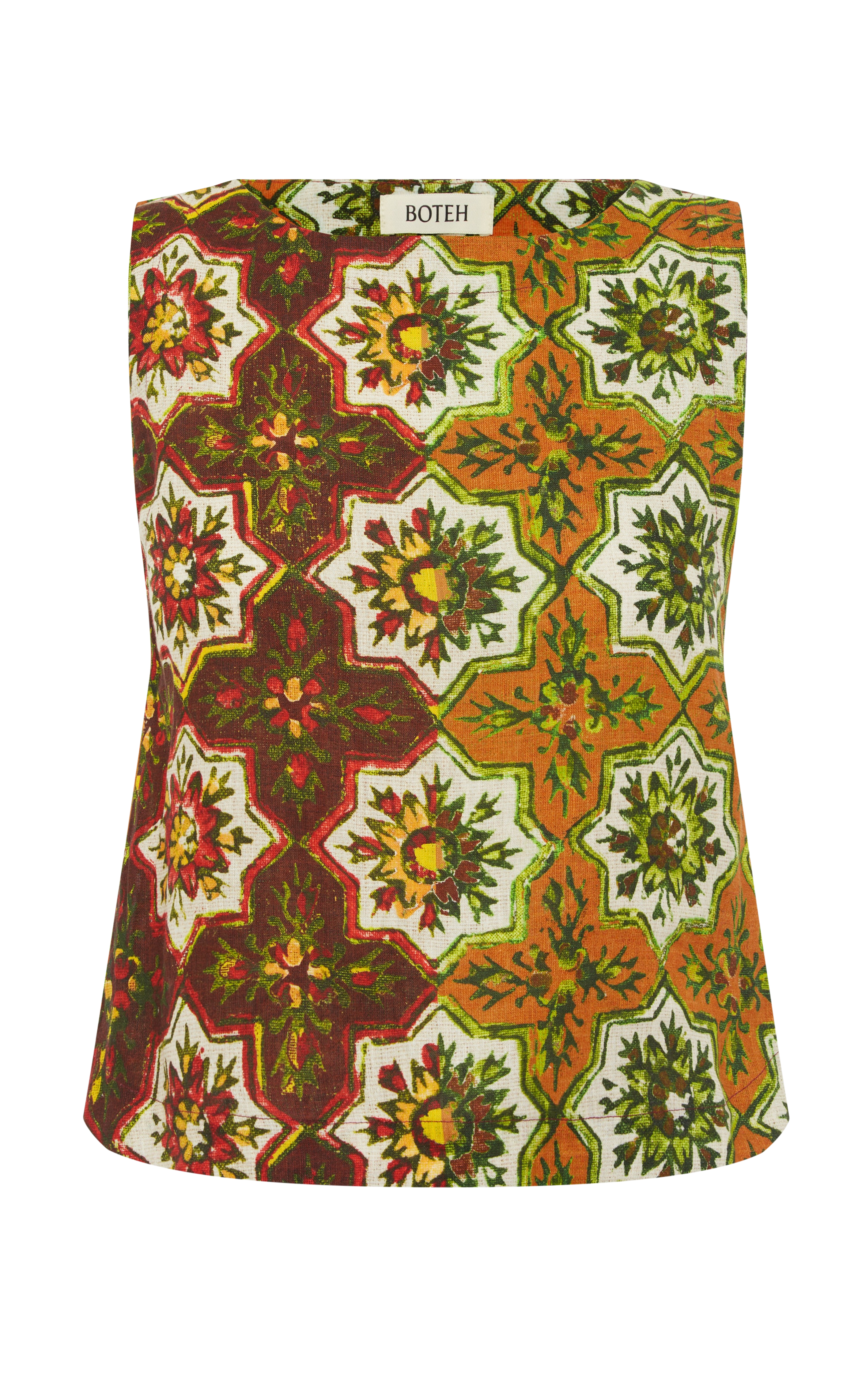 - Allambra recalls the intricate rhythm of sun-warmed tiles, its dense patchwork of retro browns, reds and mustard enlivening breezy Lenzing cottons.