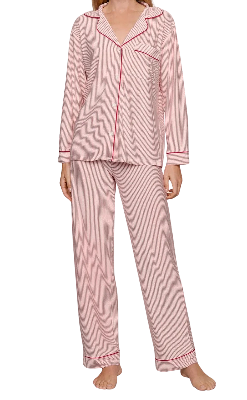 Eberjey Gisele Modal Long PJ Set, Duo Stripe Holiday Red