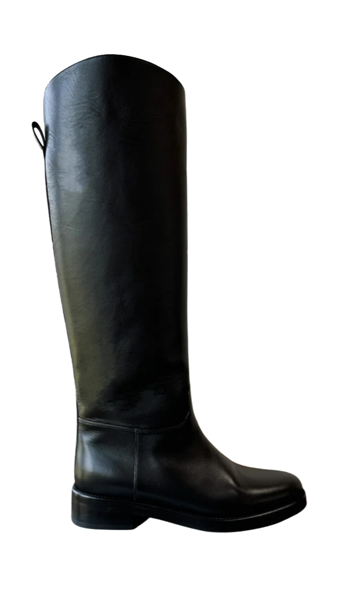 Wardrobe wear-and-have-forever, heirloom construction Equestrian style boot. this is an iconic boot style with a rich history and forever-timeless appeal. Sleek, tall, pull on style. Made in a 3rd generation family run factory in Portugal. We are honored to work with this skillful, artful producer to make beautiful shoes for our customers.