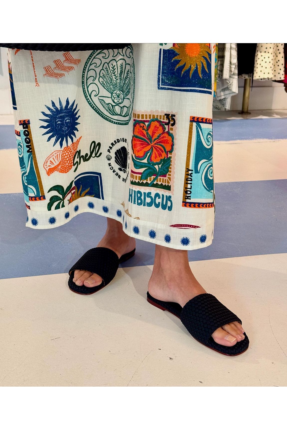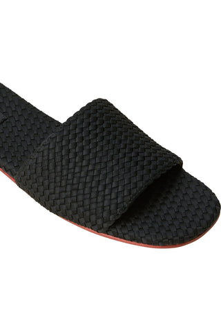 A classic single strap sandal in black handwoven neoprene, the St. Barths Slide is a timeless essential for your warm weather wardrobe.
