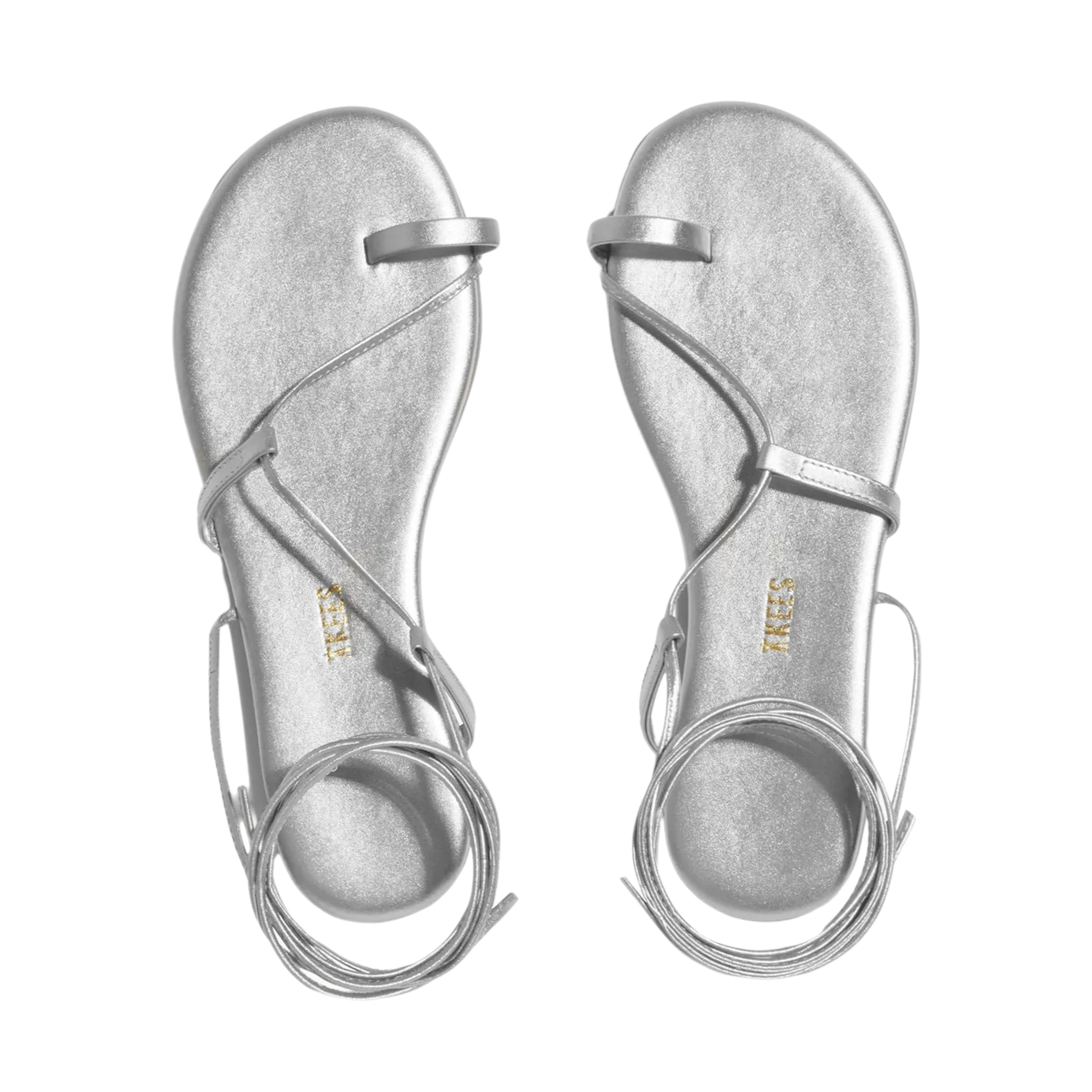 Barely-there, wrap-up sandals with a delicate toe loop and two perfectly placed straps for support. Handcrafted from soft Brazilian napa leather with adjustable suede ankle ties, a cushioned insole, and a rubber outsole for comfort.