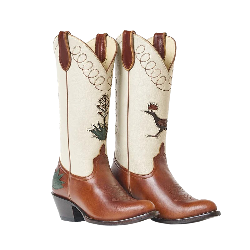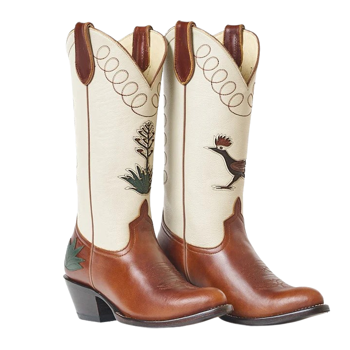 This boot tells a story with different elements on either boot - like an old vintage postcard in West Texas or Arizona. An original concept we haven’t seen happen in the boot world.