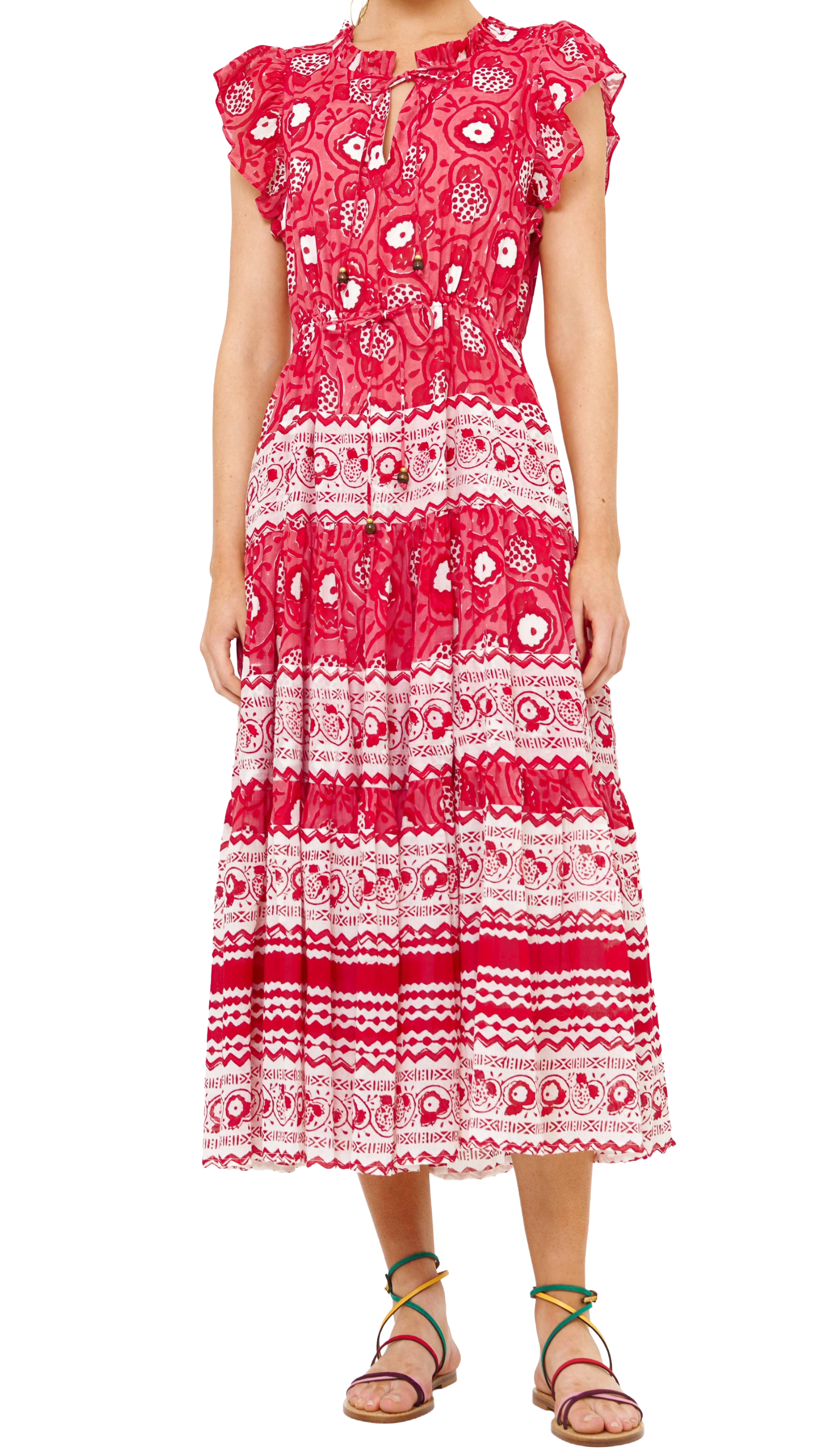 The feminine silhouette of the Cinched Flirty Midi makes this our go to day dress. Intricately hand block printed patterns play across airy cotton voile, while the cinching tie waist allows you to tailor your perfect fit.