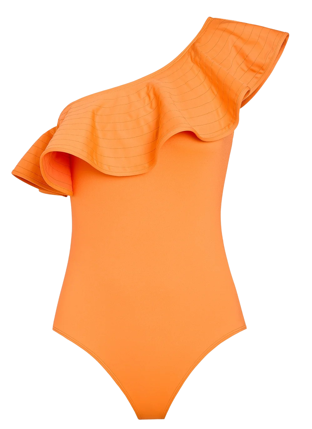 Arriving in a sunny Apricot, our best-selling Marissa one piece makes a chic statement. With a classic one-shoulder shape and a dramatic trapunto stitched structured ruffle, this silhouette flatters beautifully, and the hue is perfect for any tropical getaway.