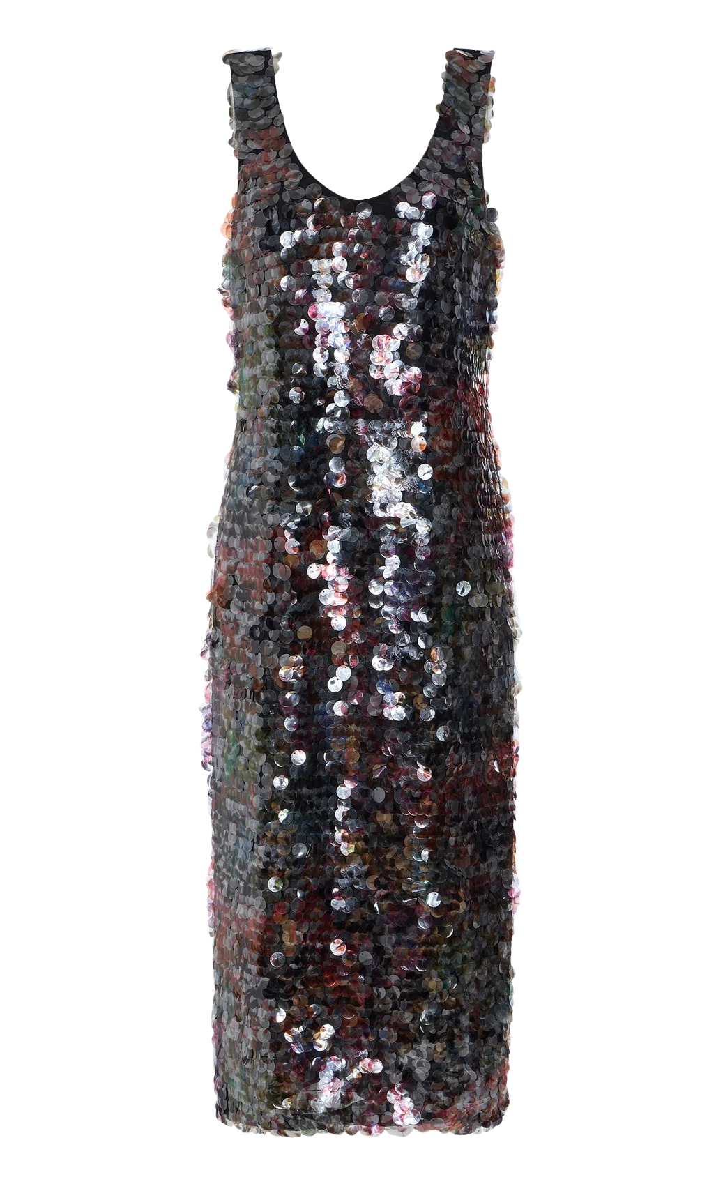 Marie Oliver's relaxed midi-style Olympia dress is the embodiment of easy elegance. Made from a full sequins, this dress is full New Year's Eve glam.