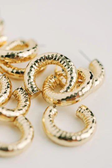 Exquisite thick hammered gold hoop earrings are the epitome of vintage glamour! Measuring 1 inch in drop, these lightweight hoops ensure comfort while making a stunning statement!