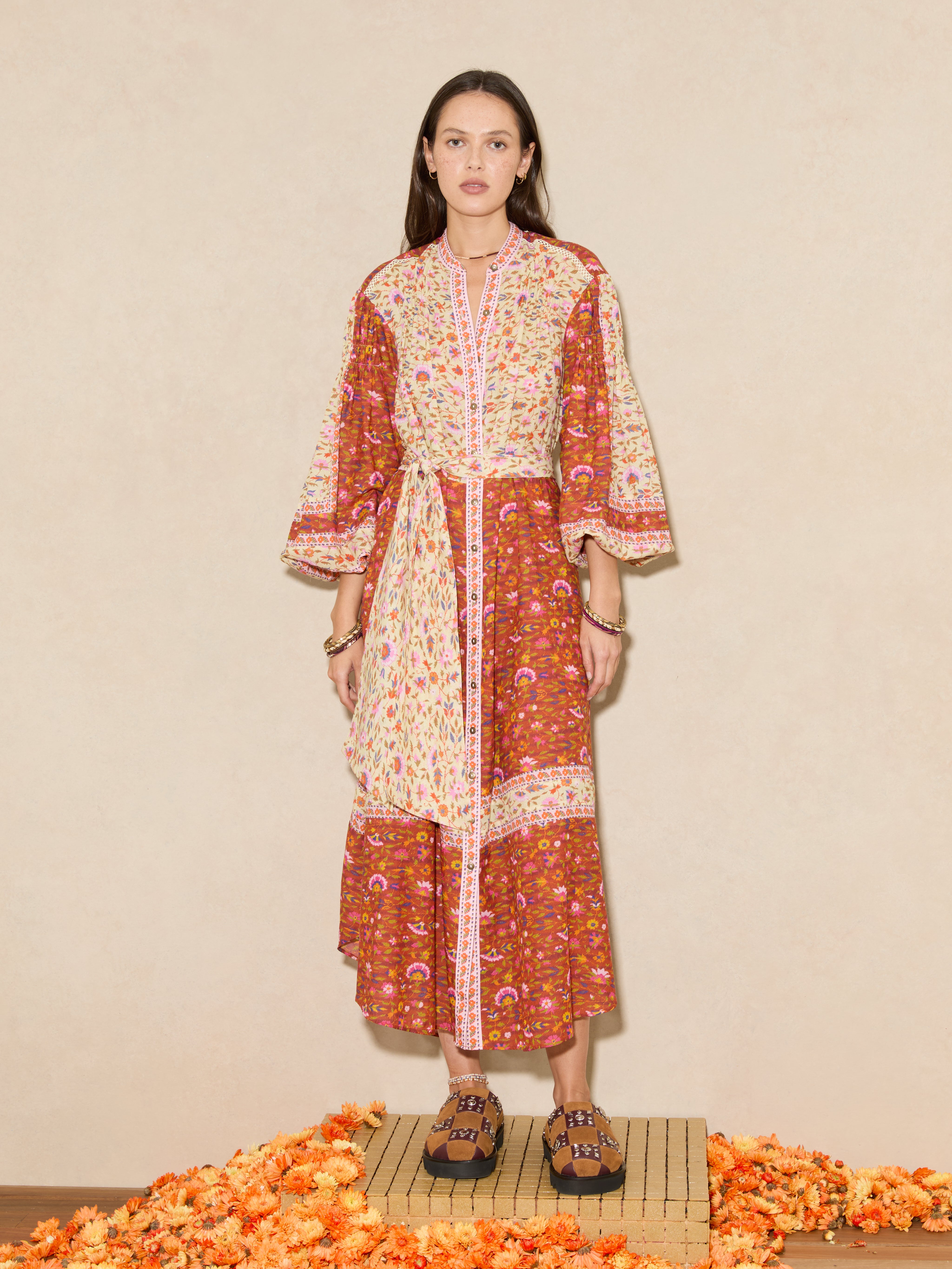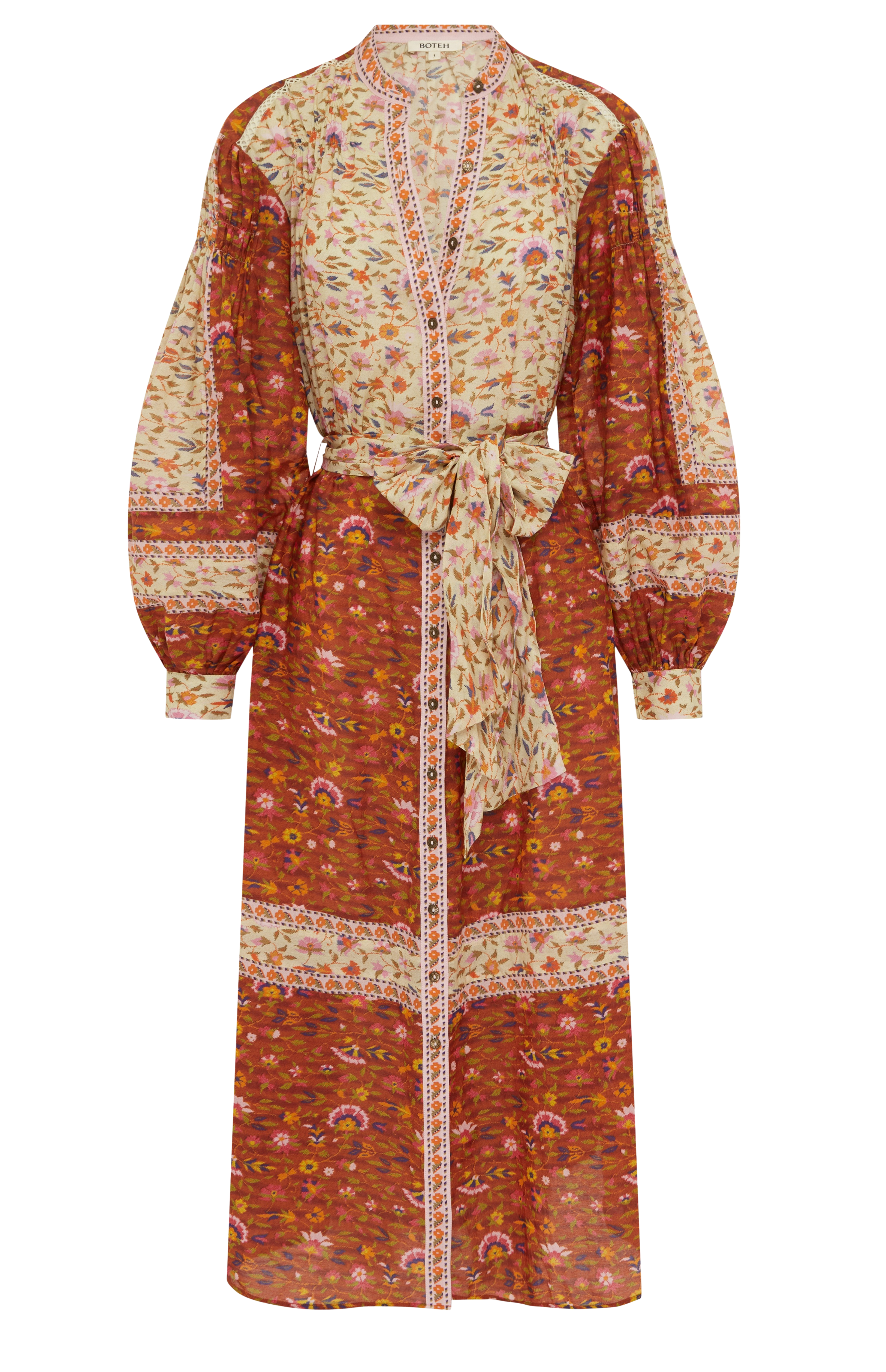 We indulge in the spicy mystique of Soraya’s floral in scorched shades, spliced motifs and billowing Marrakeshi cuts in languid cotton-lenzing.