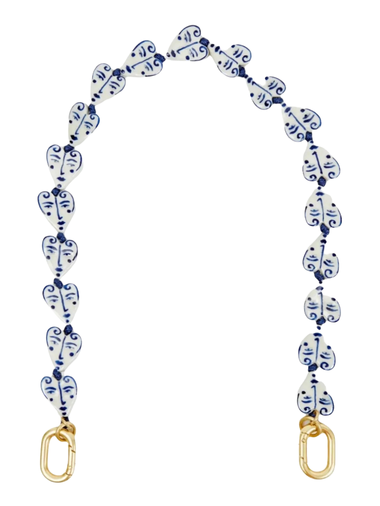 Clare V. Shortie Strap, Blue Cream Porcelain Hearts