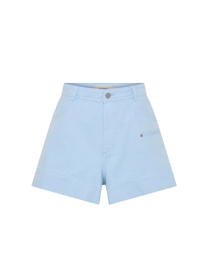 The Evie Denim Short in sky blue is an A-line short featuring Jett pockets, back panel detailing and signature hardware. Cut for a flattering, easy-wearing shape, it’s a relaxed wardrobe staple for warm-weather days. Pair with a simple tank or cotton shirt for effortless daytime ease, or style with a cropped knit or statement top to elevate the look.