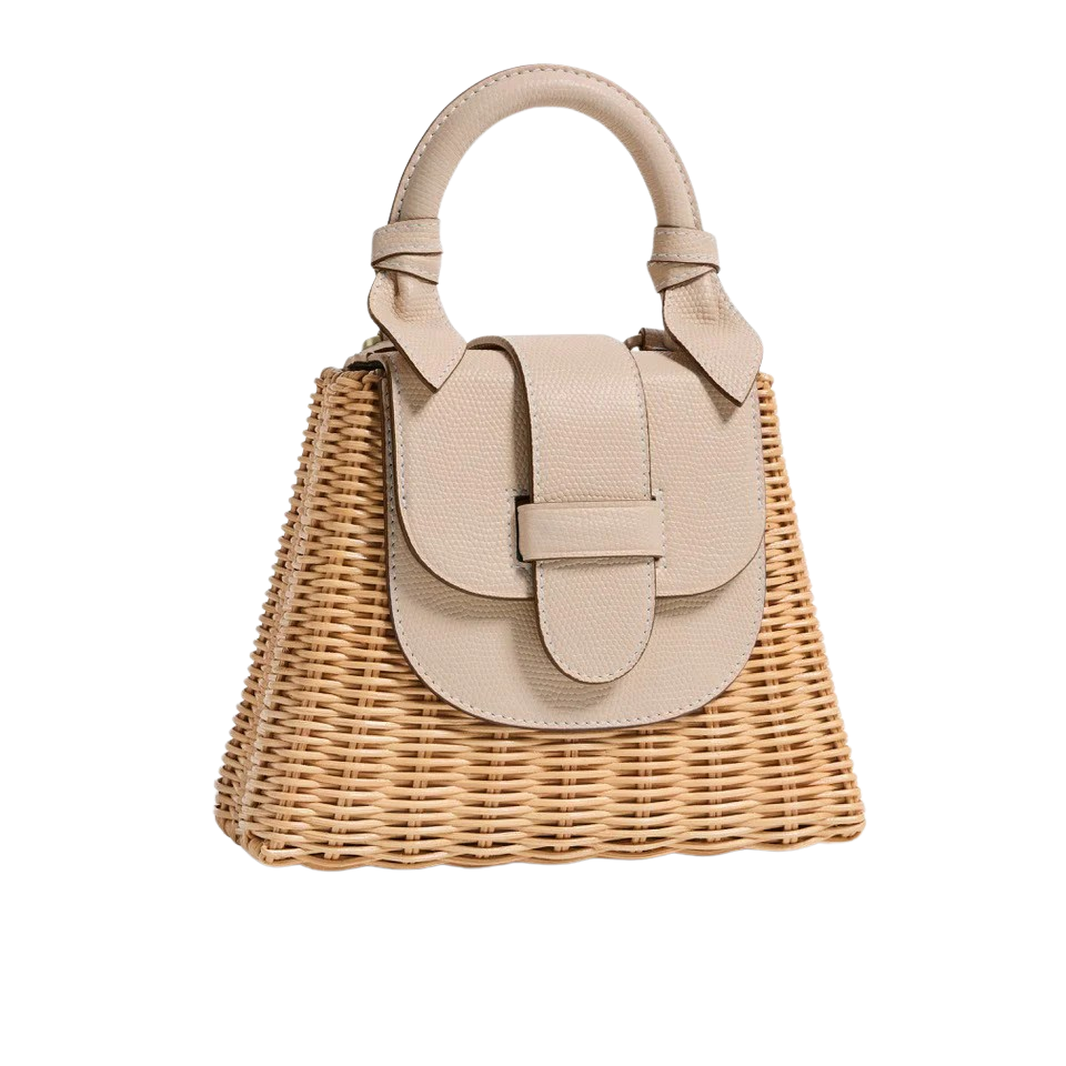 Our signature handwoven rattan top handle bag with embossed lizard leather is one for the ages — large enough to fit all of your essentials, while remaining compact and elegant. The ultimate Lady Bag features impeccable craftsmanship and now designed with an adjustable webbing strap. Create a new look with greater functionality as a crossbody or shoulder bag.