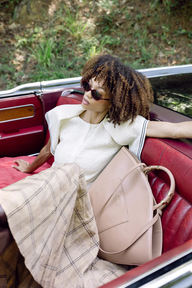 An everyday leather tote perfect for work, travel, commuting, poolside and more. Specially featuring elevated, linear silhouette and clean, minimal design. Made from smooth Napa Leather in Toffee Tan. Lined with cotton twill fabric. Carry multiple ways using signature top handles or with longer shoulder straps for comfortable, handsfree wear. Will happily hold 13" laptop, iPad, water bottle, planner + notebooks, small pouches for essentials, chargers and everything else you need for a full day. Also includes a large front pocket & interior zip storage pocket.