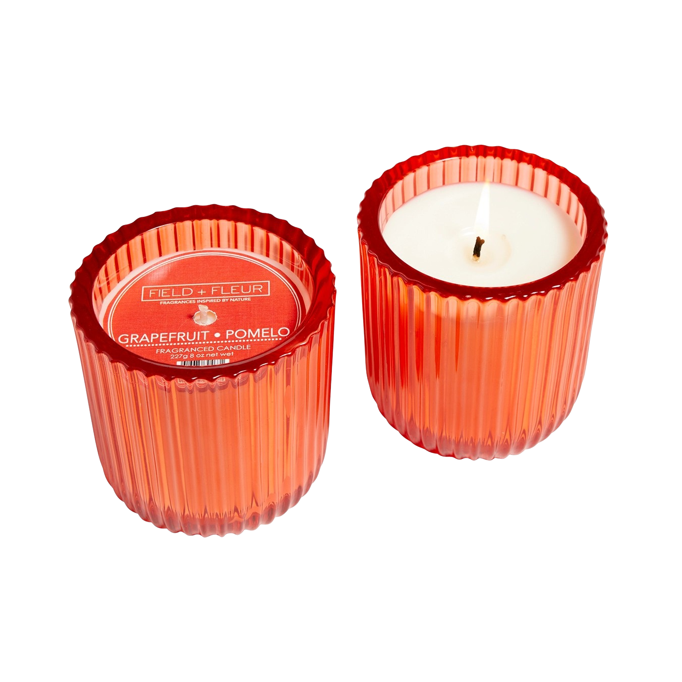 Field + Fleur Candle in Colored Glass 8oz, Grapefruit Pomelo