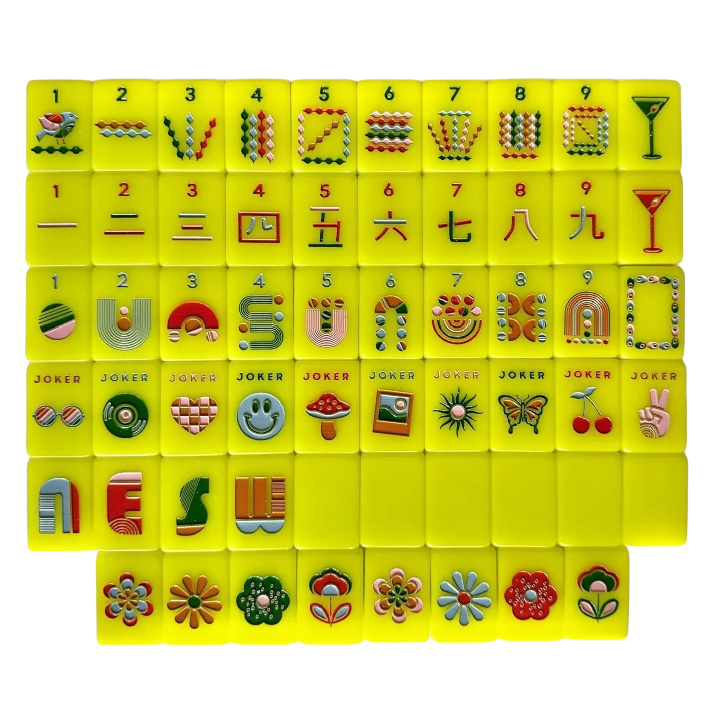 • Jokers: 10 - This set has 2 more jokers than a traditional mahjong set, but we like to use all 10!