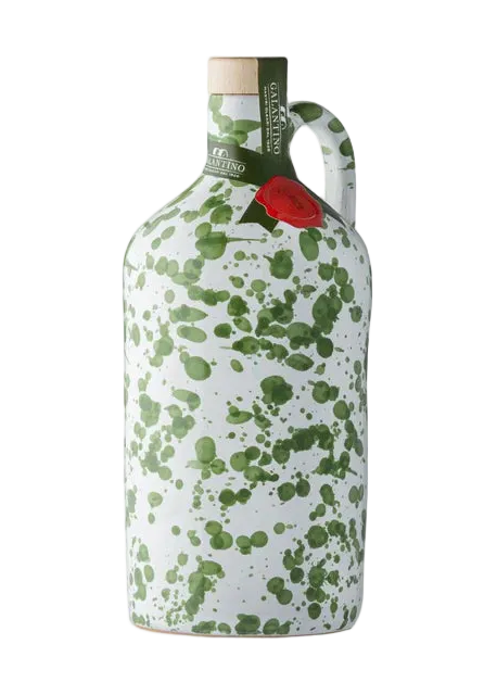 The “Fantasia" ceramic bottle comes in a variety of colors and patterns and is hand-painted by local artisans of the Puglia region of Italy, where the award-winning Frantoio Galantino olive mill is located. It is filled with their delicious and authentic extra virgin olive oil made from Ogliarola and Coratina olives. Golden yellow-green in color and well balanced flavors of almond and artichoke make this an ideal extra virgin olive oil for everyday use. Great for cooking and for dressing a salad.