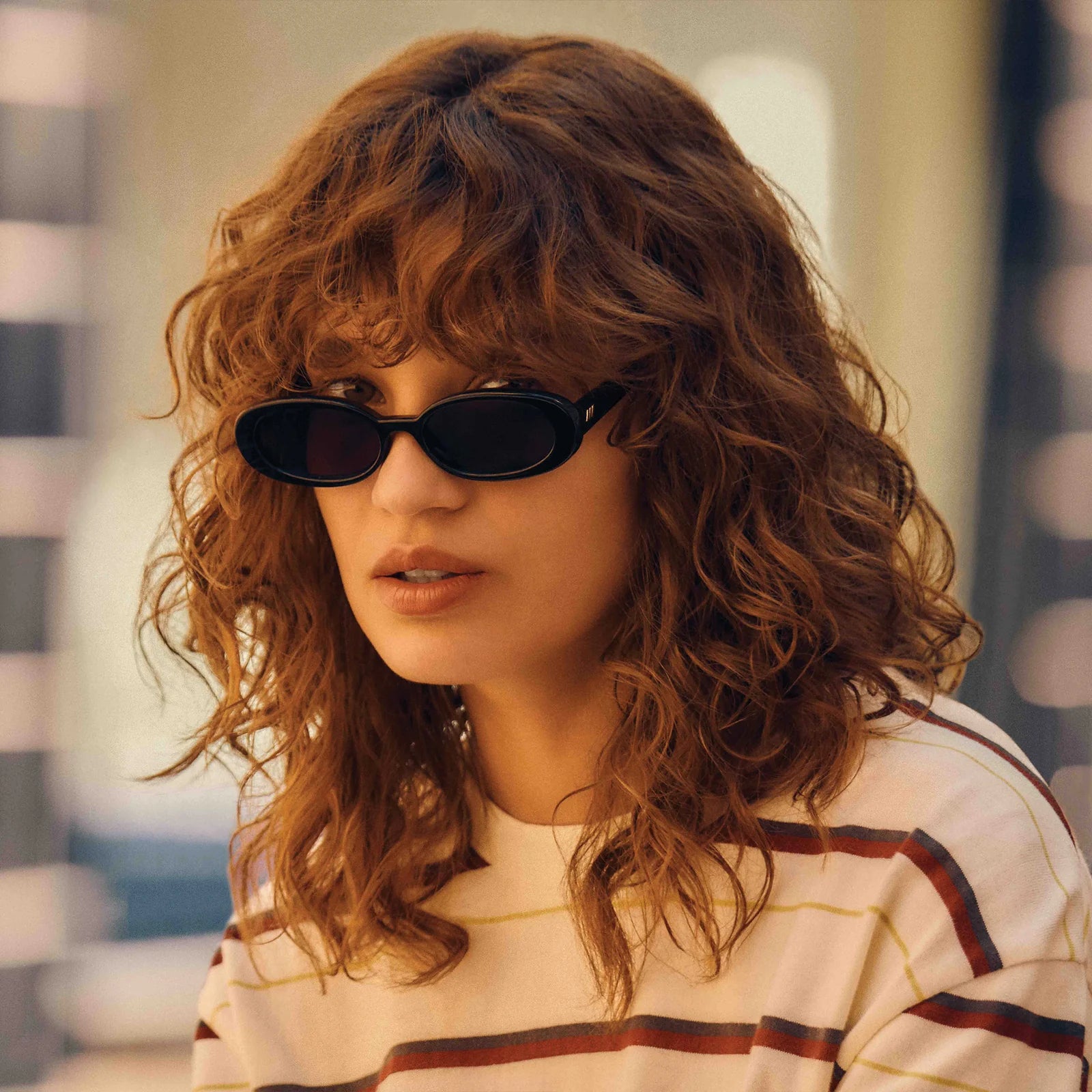 Exuding '90s confidence, our iconic OUTTA LOVE silhouette offers a minimal nineties look. This petite, slimline oval silhouette features a modern flat profile and signature Le Specs gold metal hardware, and is just the right size to complement your face without hiding your best features.