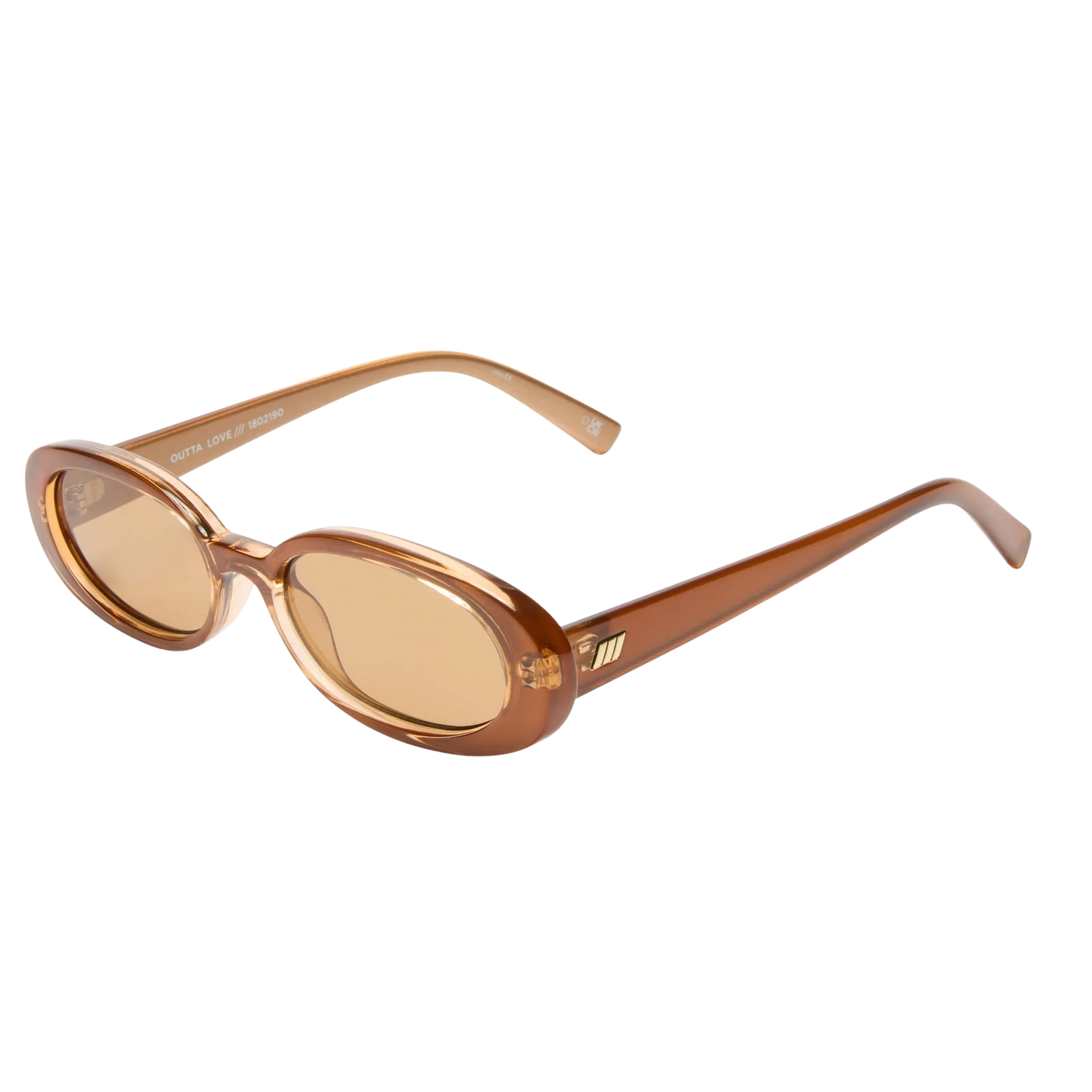 Exuding '90s confidence, our iconic OUTTA LOVE silhouette offers a minimal nineties look. This petite, slimline oval silhouette features a modern flat profile and signature Le Specs gold metal hardware, and is just the right size to complement your face without hiding your best features.