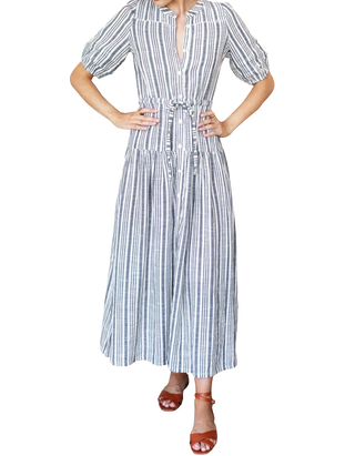 Love Tomas by EF Lucy 4 Basque Dress, Aradonis Stripe Storm Grey