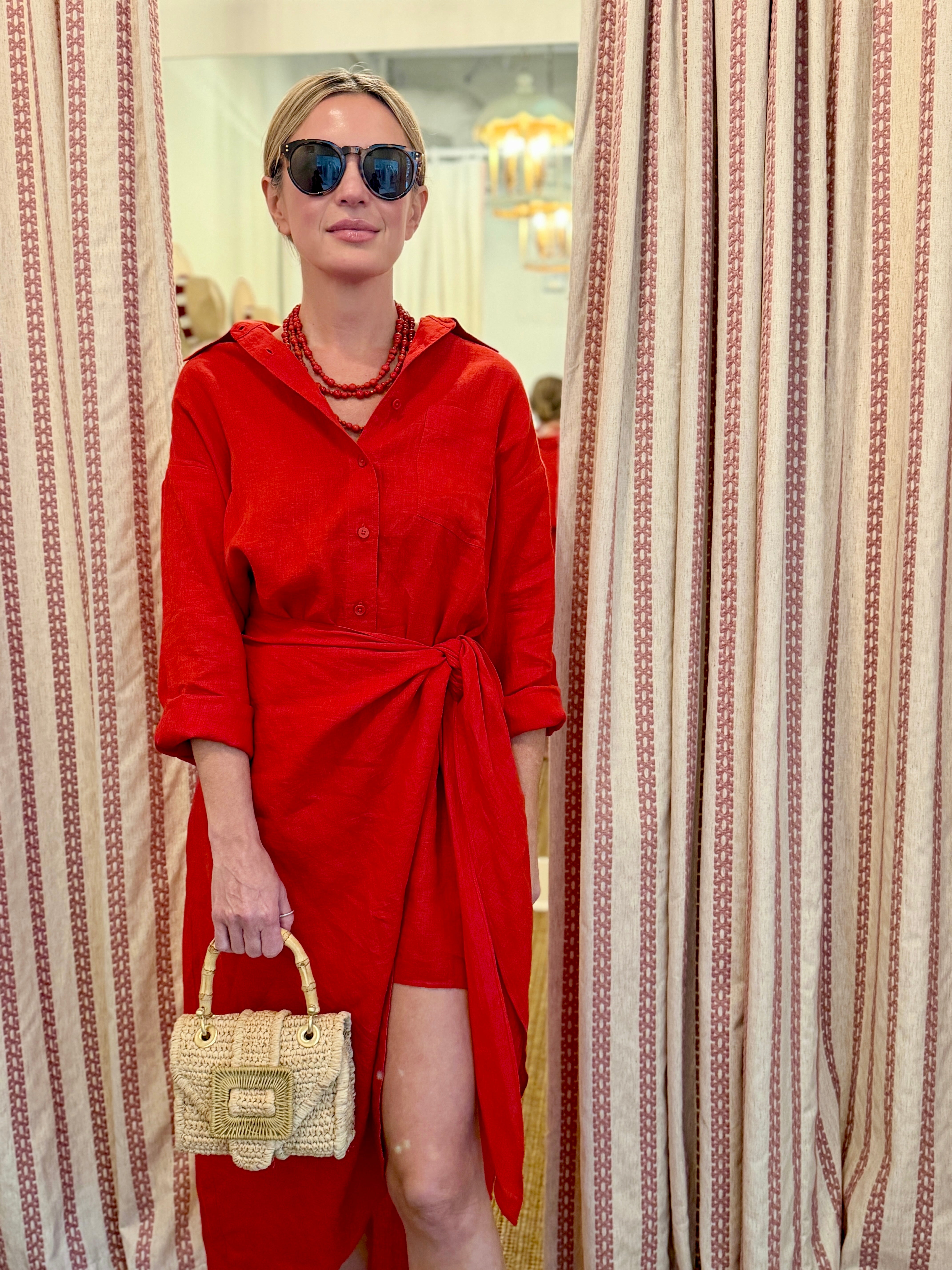 Apiece Apart Alessandra Sarong Shirt Dress, Racing Red