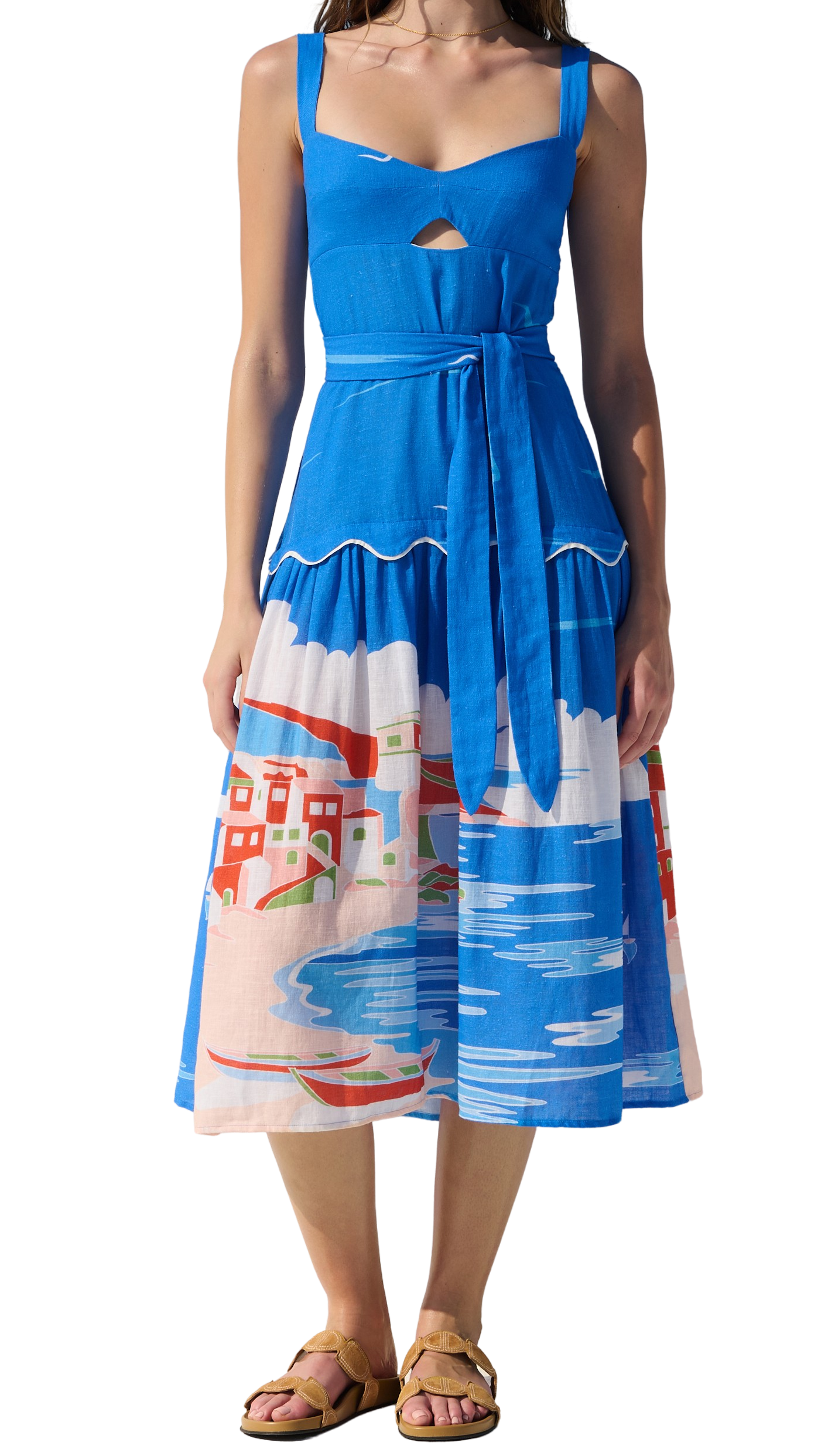 An eye-catching mid-length gown featuring an elegant heart-shaped neckline, delicate front opening, and flowing layered skirt that creates beautiful movement. The Emma Dress includes a removable waist belt to enhance your figure, making it the perfect versatile piece for seamless transitions from daytime events to evening occasions.