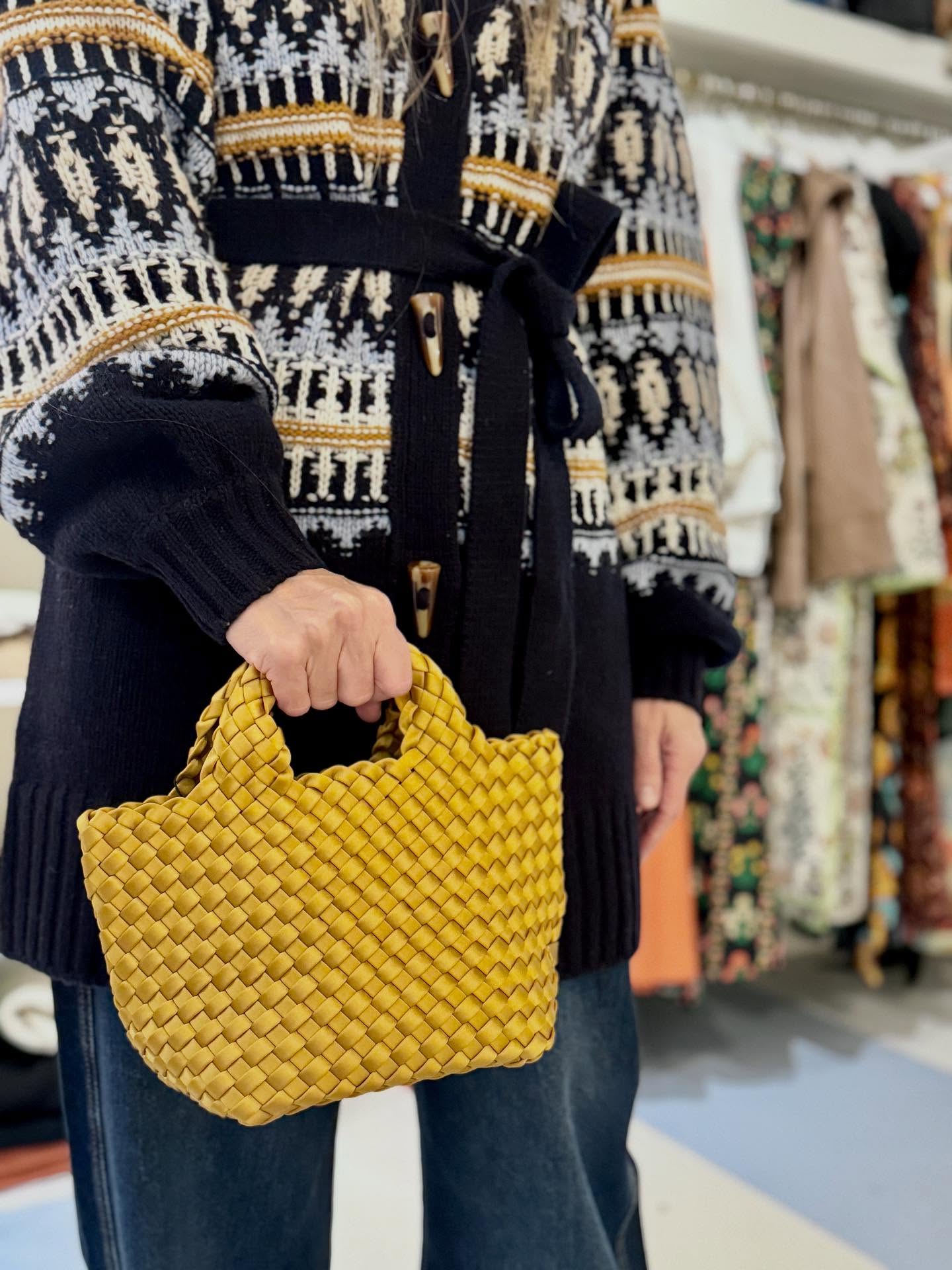 • Handwoven satin mini tote