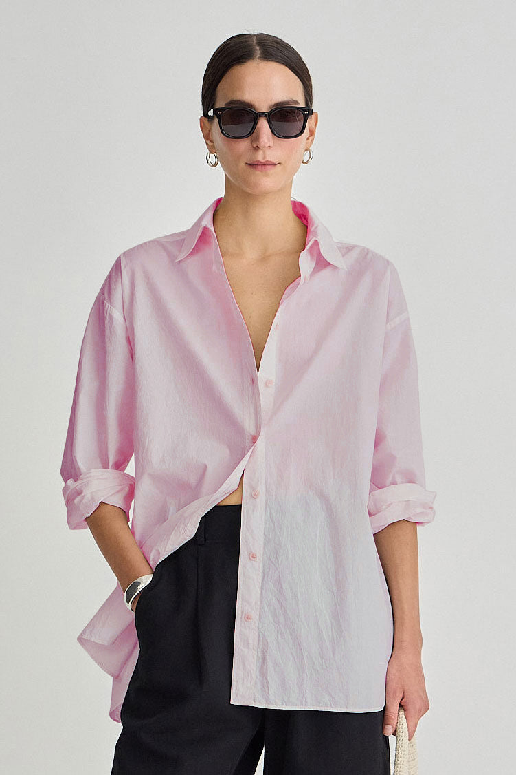 A modern take on the classic button-down — this new signature silhouette features a structured collar, dropped shoulders, and an easy, oversized fit for effortless drape.