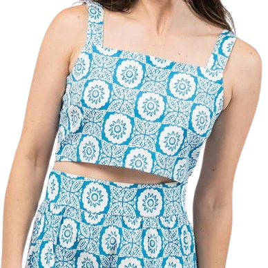 The Markey Tank in Blue Flower check is a cropped length with a smocked back for an easy fit. Pairs perfectly with the Markey Skirt.