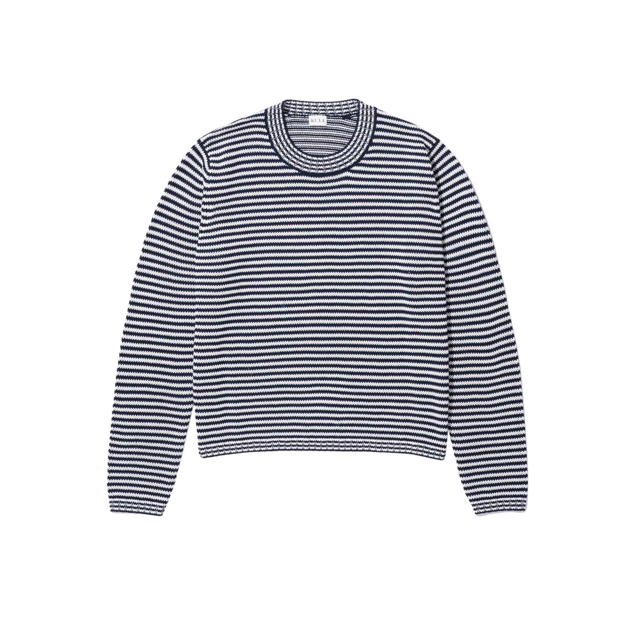 The Peyton is a classic striped knit with an effortless feel. Made from 100% cotton, it features mini stripes throughout with ribbed trims at the neckline and cuffs for a clean, finished look. Designed to pair perfectly with the Agnes short, it also stands on its own as an easy everyday sweater.