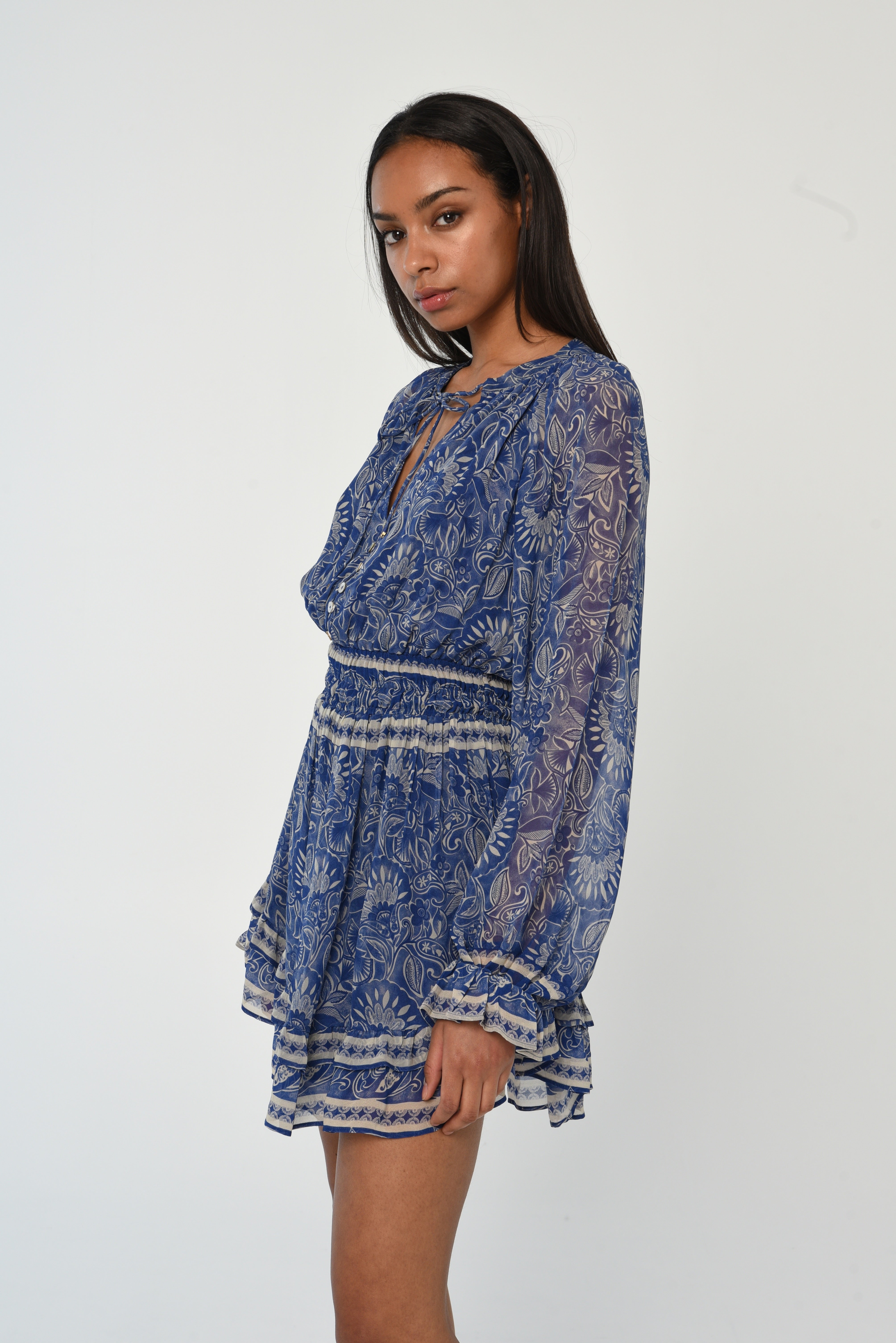 • V neckline with tie closure