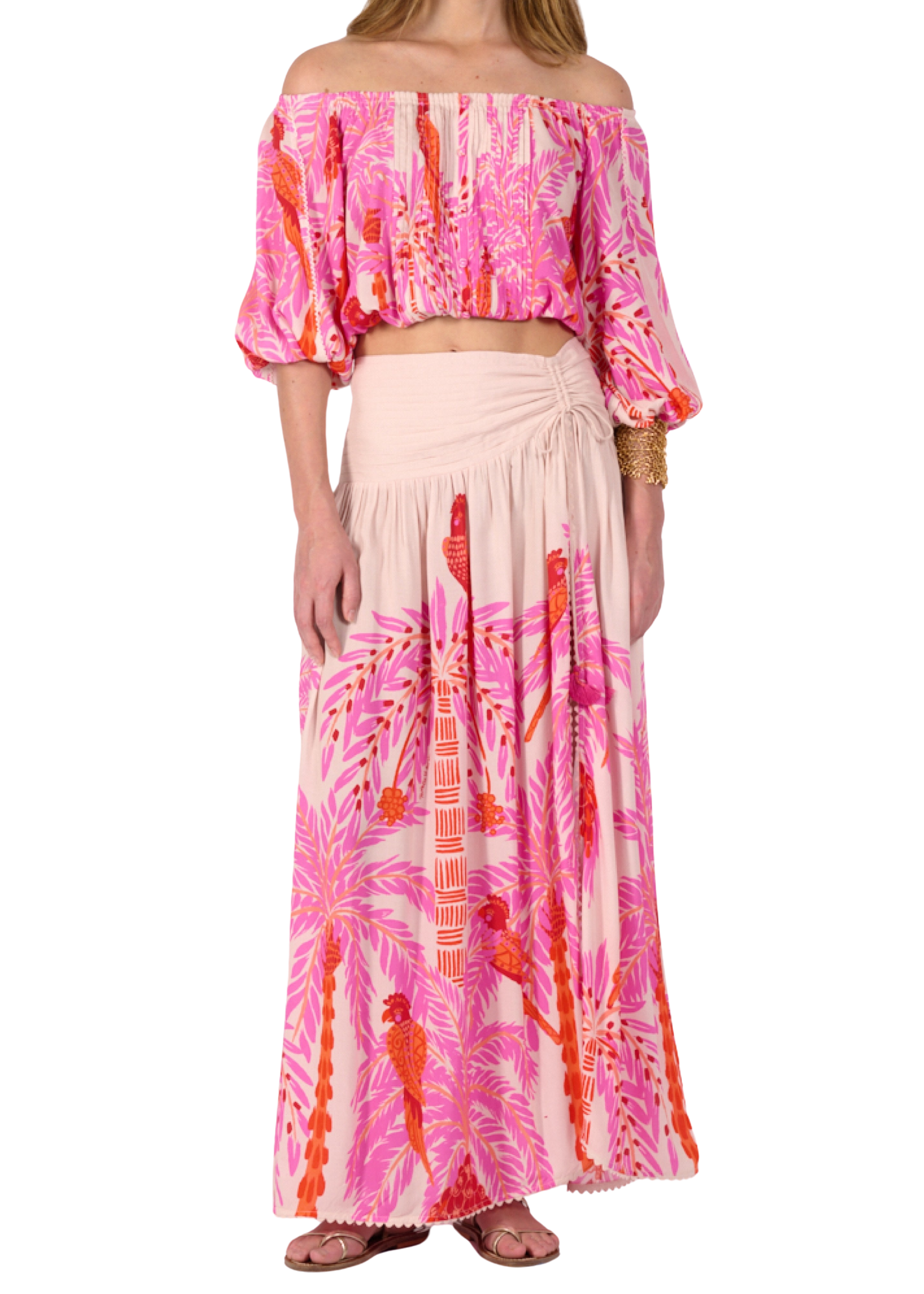 A pleated waistband delicately highlights the waist while accentuating the skirt's fluidity.