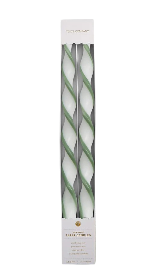 Twist & Glow Ribbon Tapered Candles, Green