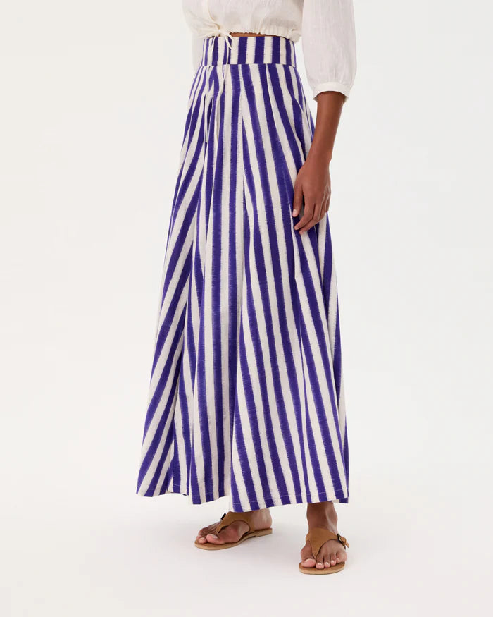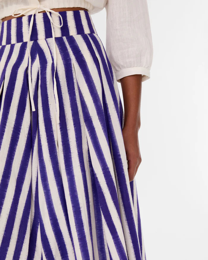 Featuring a wide, comfortable waistband, the Flaminia Skirt is a beloved breezy A-line silhouette crafted using the traditional Ikat technique, which involves dyeing threads before weaving to create one-of-a-kind striped patterns.