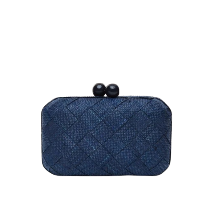 This clutch is finished with double wooden balls that help you gain access to the interior of the clutch. The optional chain strap allows you to alternate wearing this style as a clutch or shoulder bag.