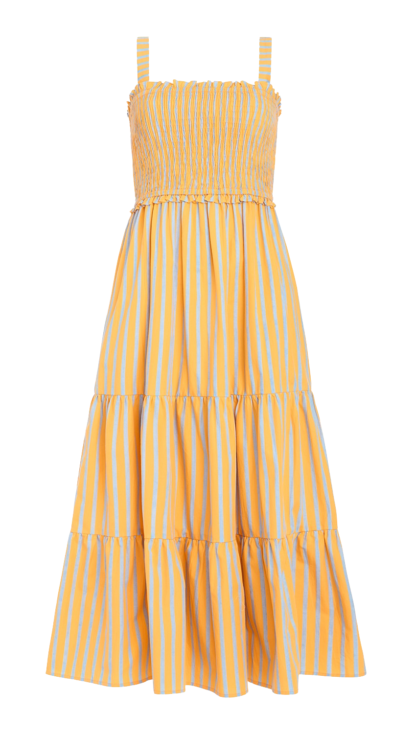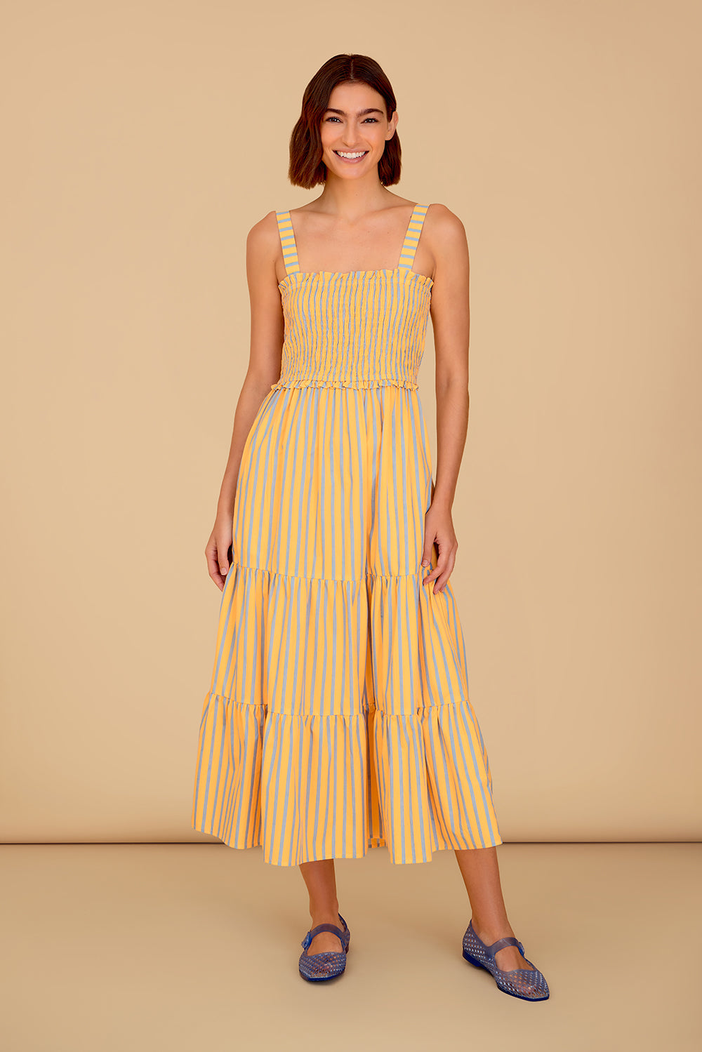 - Smocked bodice for a fitted, flexible silhouette