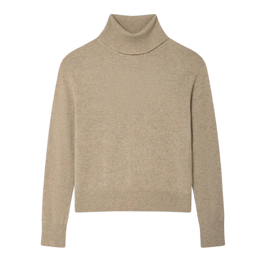 White & Warren Cashmere Rib Trim Easy Turtleneck, Taupe Heather