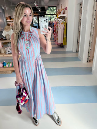Emporio Sirenuse Lotty Papyrus Embroidery Dress, Golden Green