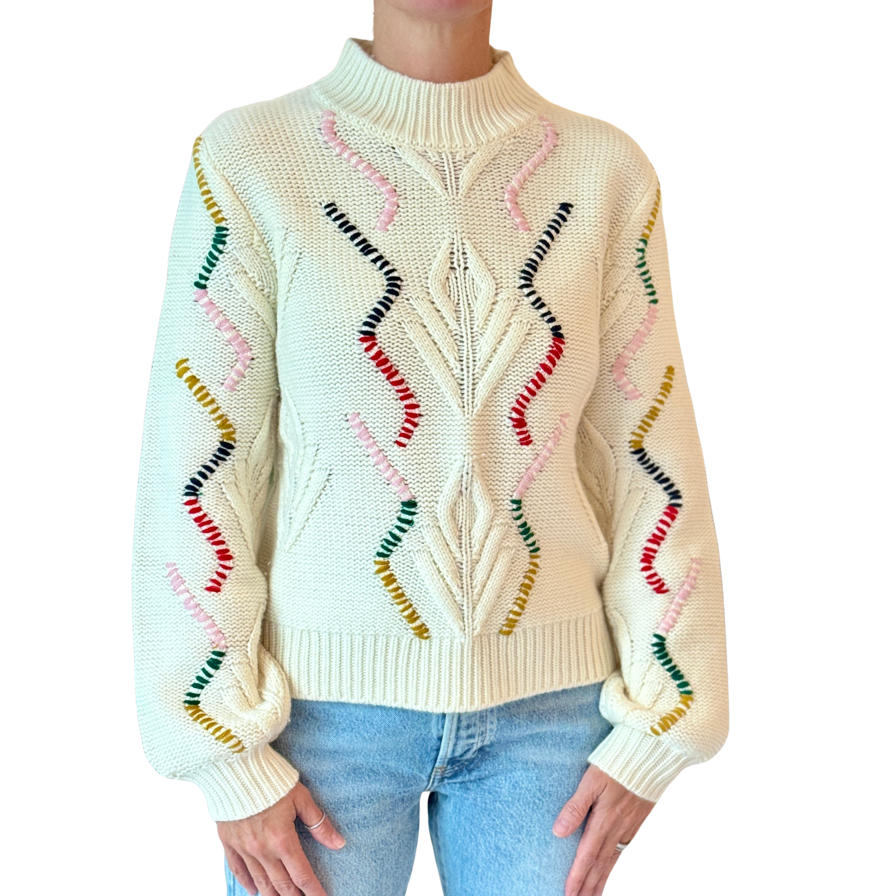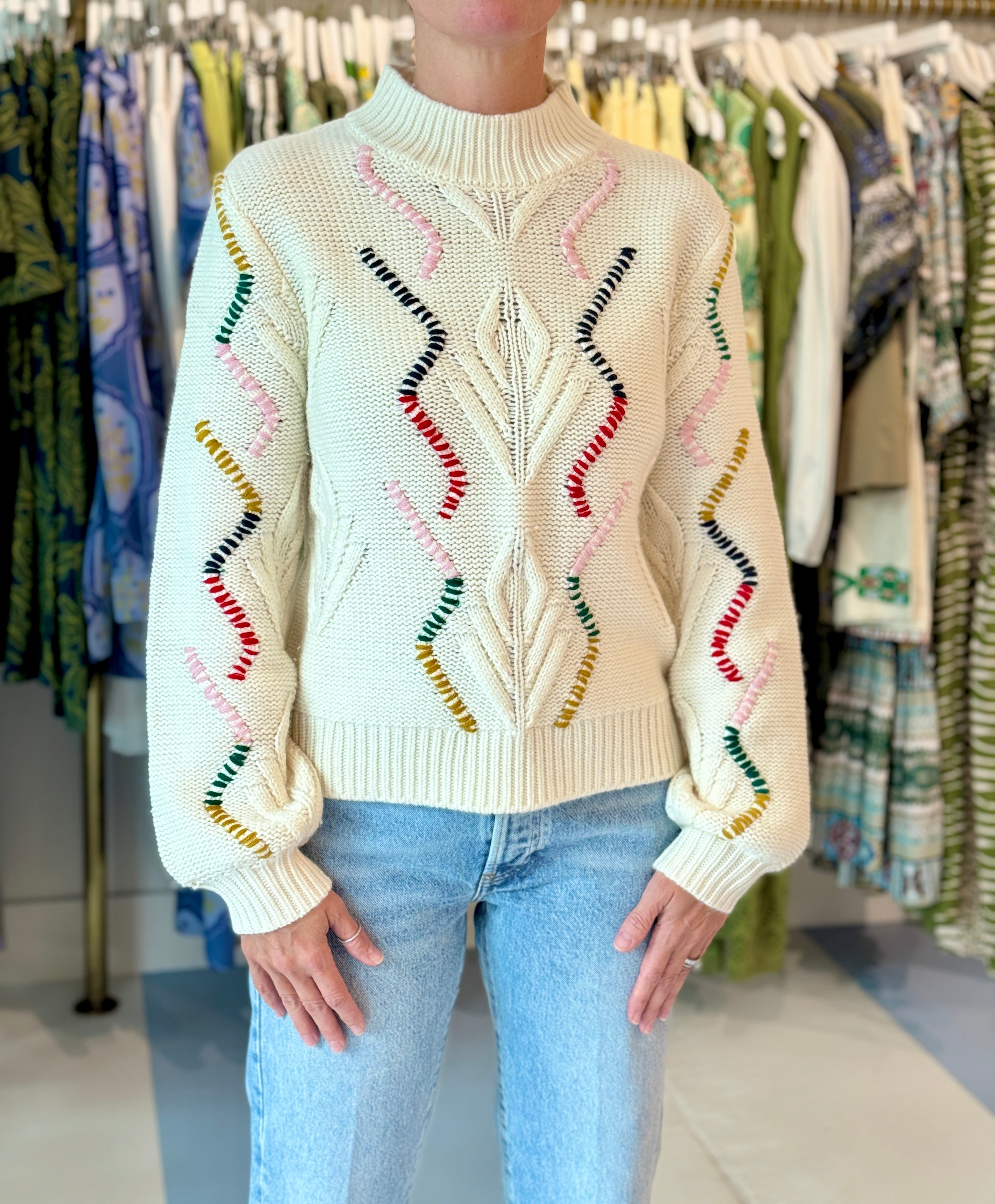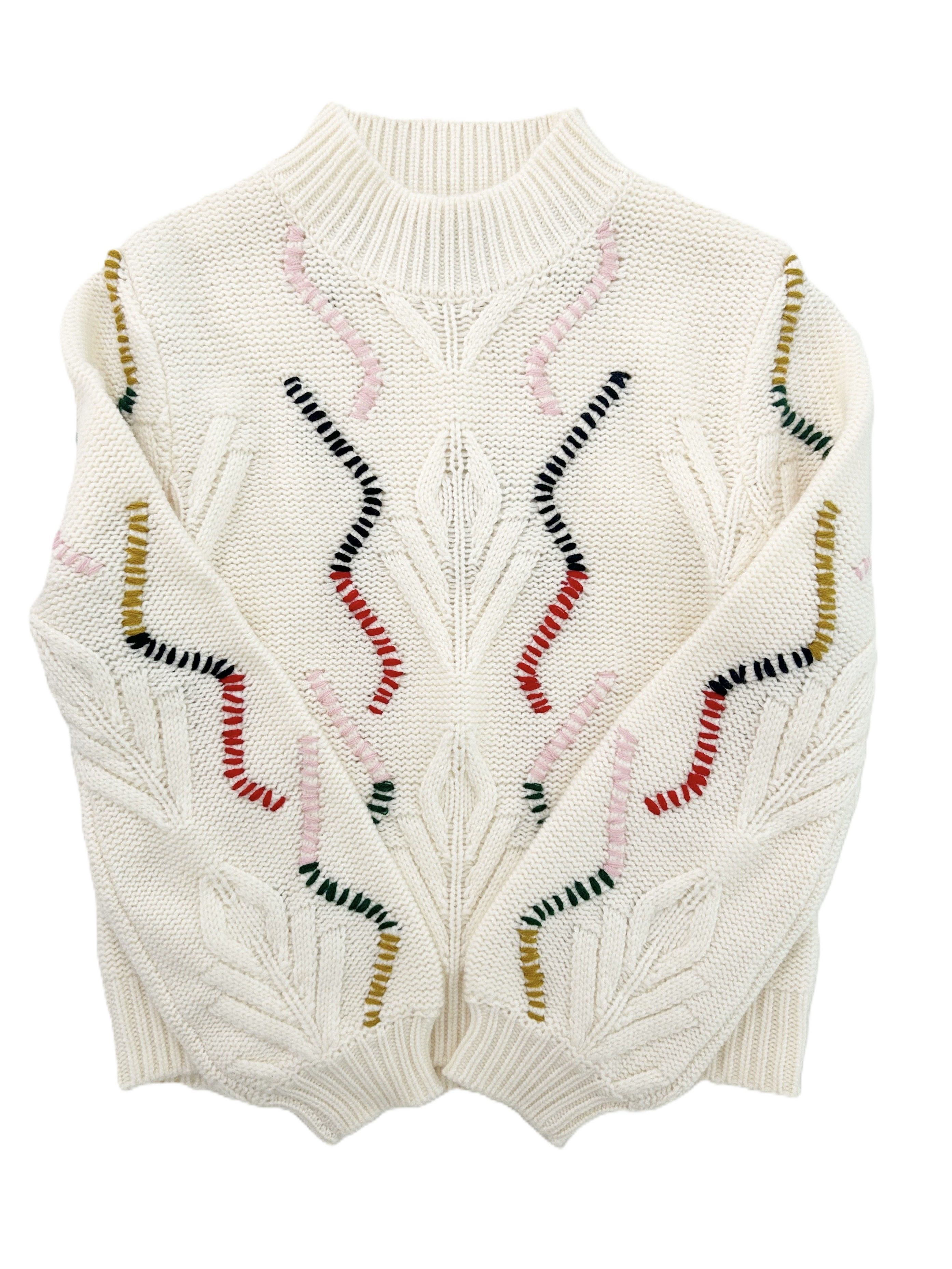 Jumper 1234 Overstitch Cable Turtle, White Alyssum Multi