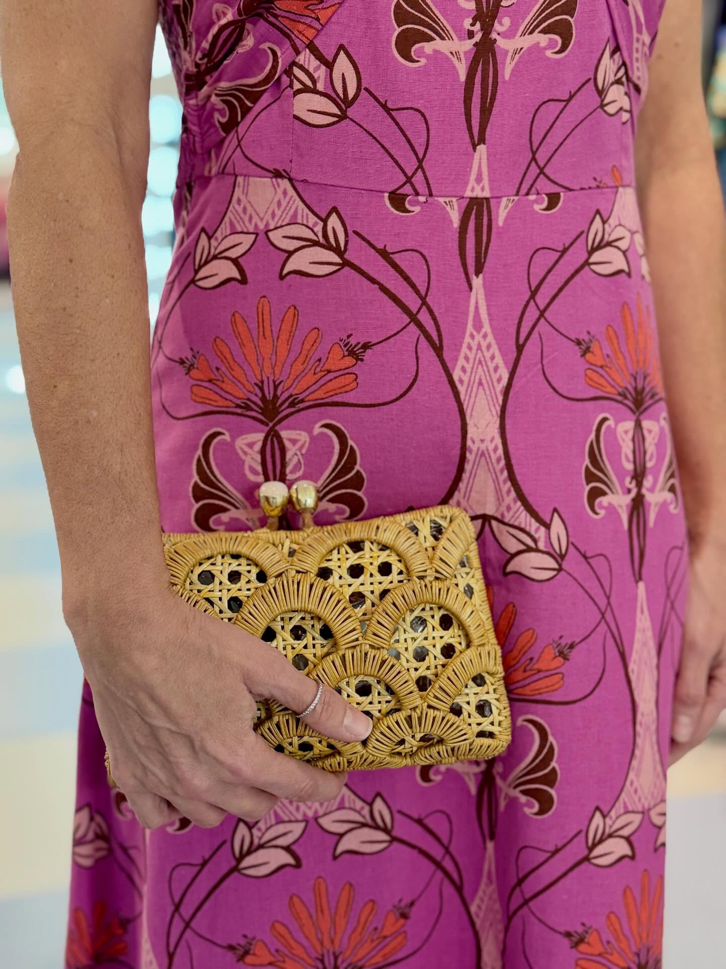 Serpui Charlotte Scales Wicker Clutch, Light Honey