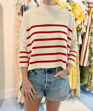 White & Warren Varsity Cotton Striped Polo, Ivory Retro Green