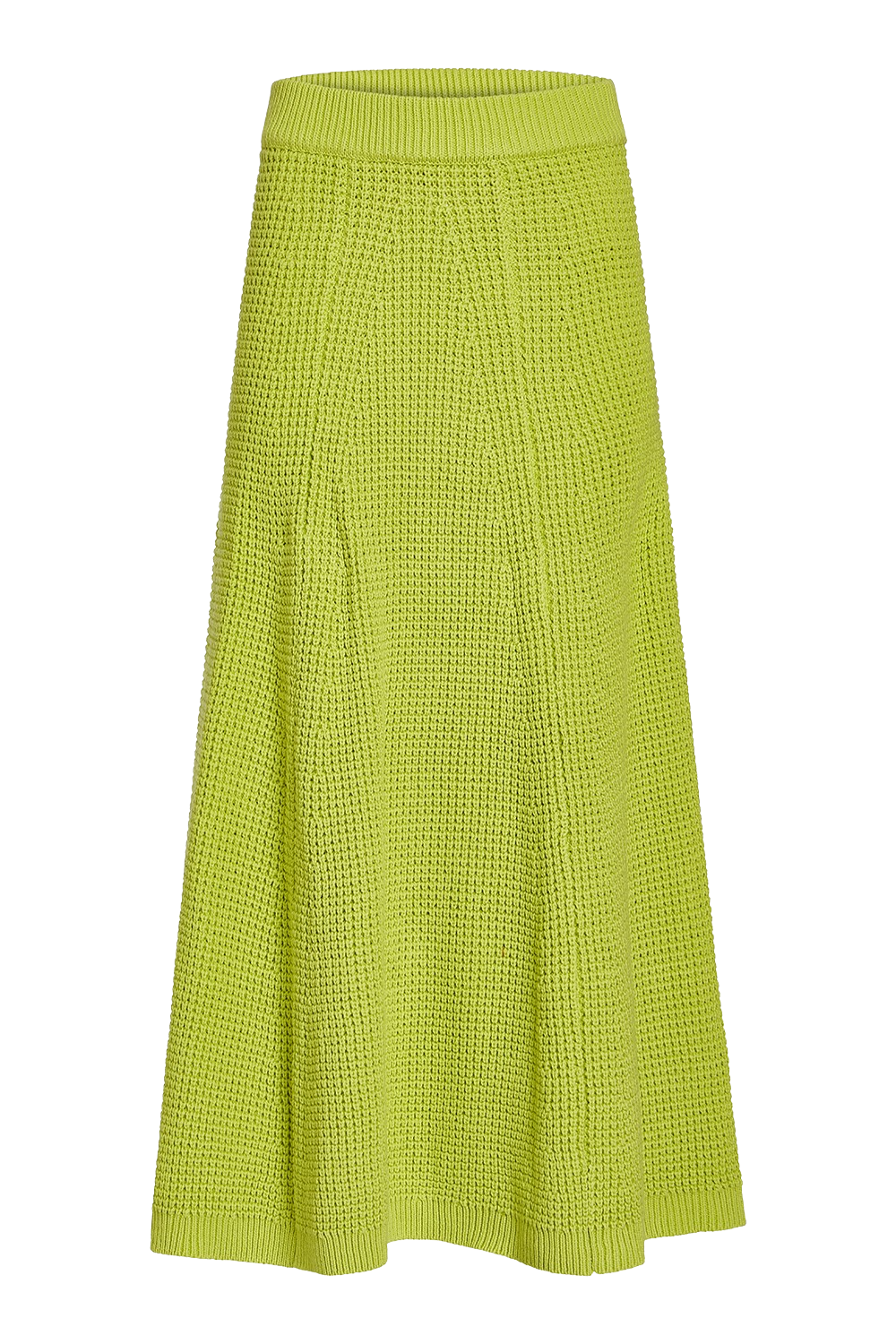 The Gerty Skirt is a vibrant Zest knit that adds intrigue to any outfit. Designed with a ribbed waistband, it subtly defines the waist for a flattering silhouette. This maxi skirt offers both warmth and style, making it a versatile piece for cooler seasons. Pair it with the Wren Top for a stylish resort knit set.