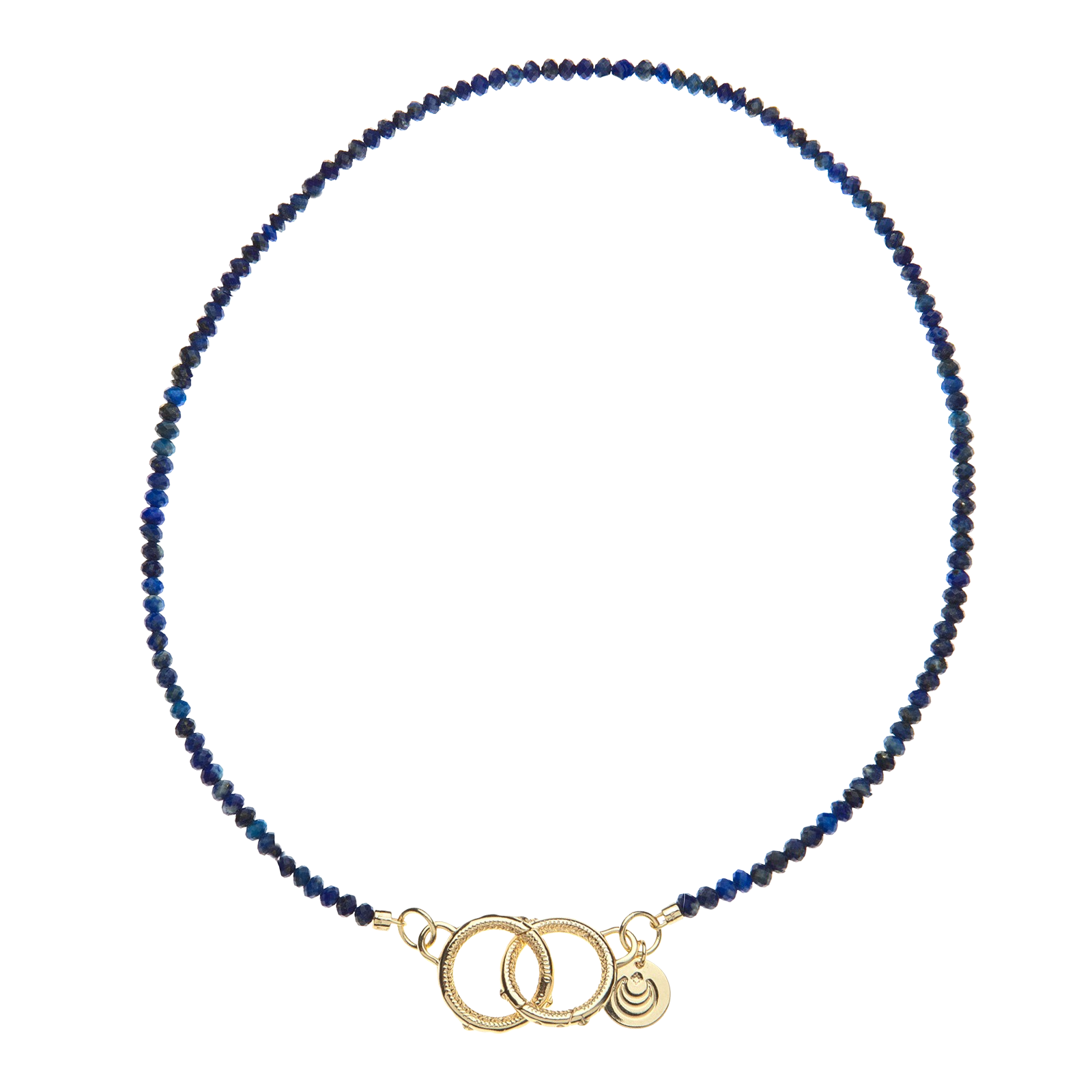 We love versatility, as well as a pop of color, and this necklace has both. Made from diamond cut lapis beads, this necklace can be worn as one necklace loop, or, if you are attaching your Jane Win pendant to the end, in a lariat style. A perfect addition to your neckmess.