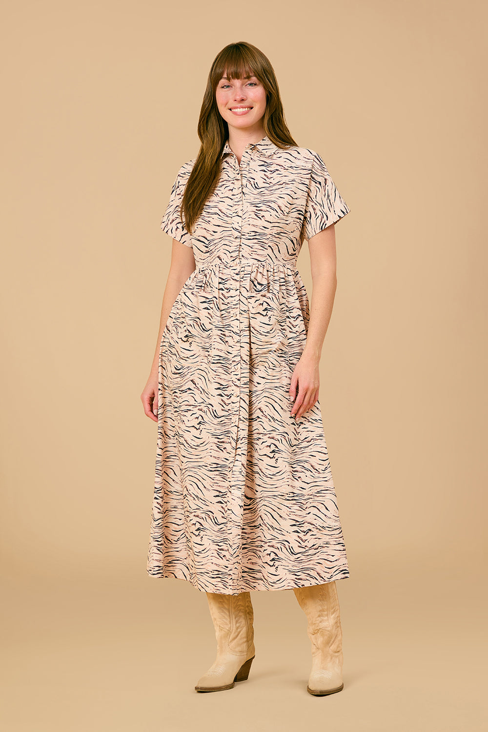A must-have midi, the Lakelyn is one of those staples you'll reach for again and again. This versatile dress can be easily styled for everything from work and walking around town, to date night and parties. We love all the design details - a full button front, fitted waistline, cuff sleeves and front pockets.