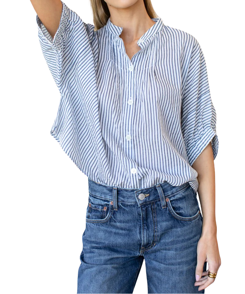 Love Tomas Mandarin Collar Top, Indigo Stripe Organic