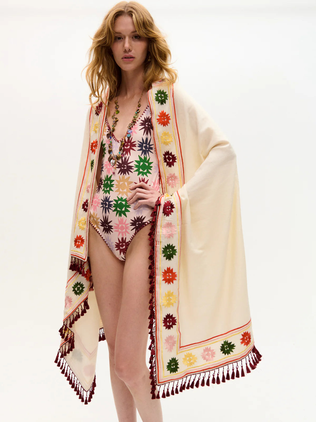• Ivory pareo with embroidered details