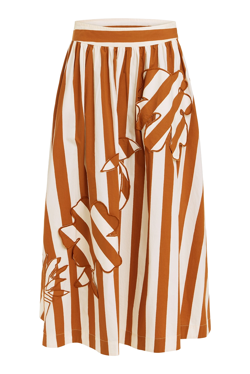 The Kit Skirt blends ease and charm with its flattering high waist, scalloped hem, and floral embroidery patch detail. Designed with a full, flowy silhouette and soft gathering at the waistband, it moves beautifully and pairs effortlessly with the Lulu top and simple tees.
