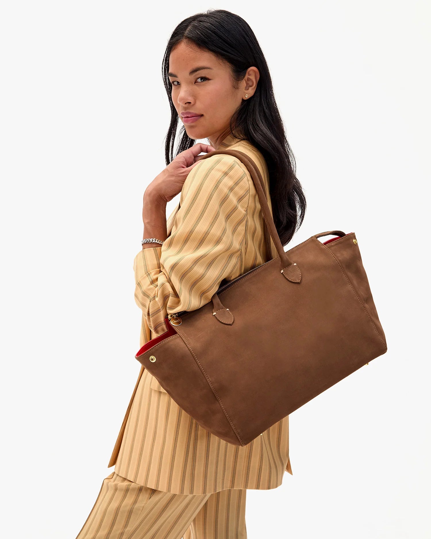 Clare V. Beatrice Smooth Nubuck Tote, Choco Bar