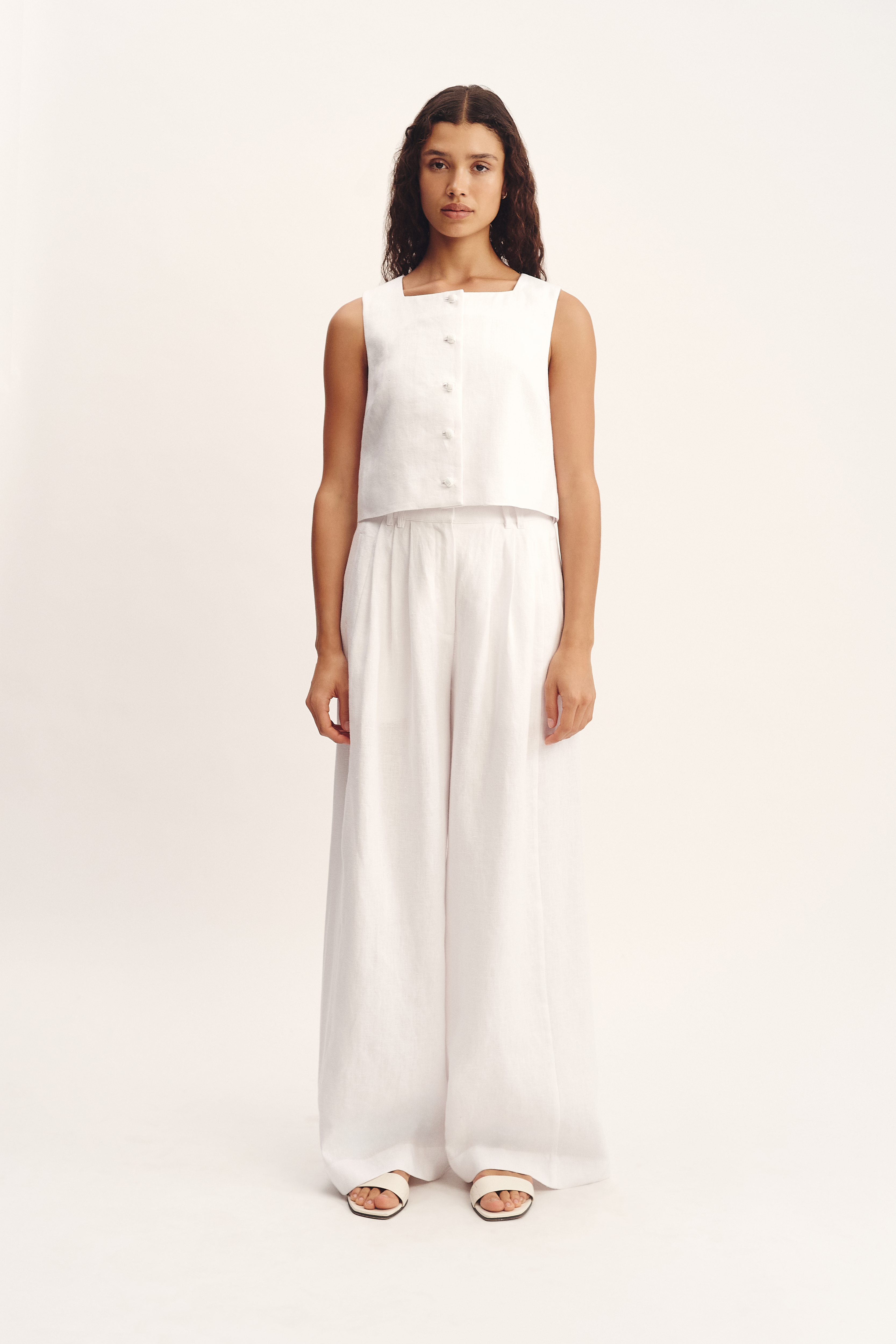 The Rio Top features an elegant wide neckline and has a relaxed cropped silhouette.