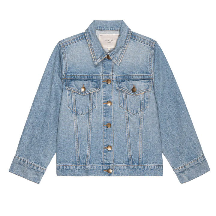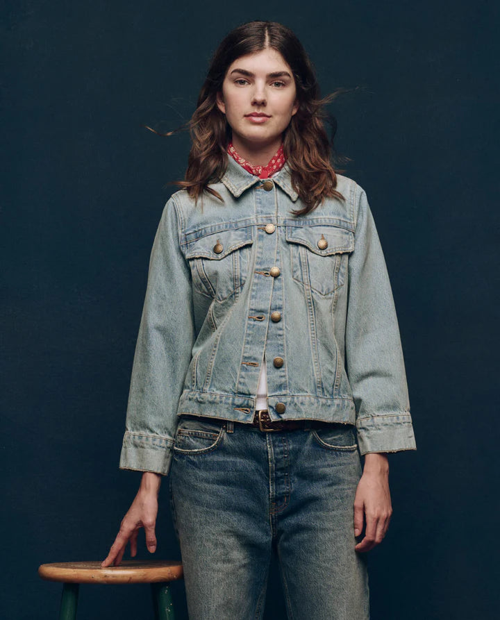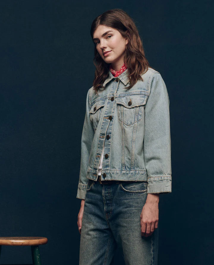 The Slouchy Jean Jacket. is the kind of piece you’ll hold onto forever. Made-in-LA and vintage-inspired with classic details including oversized patch pockets, metal buttons, double-needle stitching details, and the perfect vintage wash. This jacket is designed with a relaxed, boxy shape worn by both workers and rockers, refined in the 1960s with its clean lines, signature V-shaped seams, and flat pockets. Wear yours with a white tee and denim for a classic look we love.