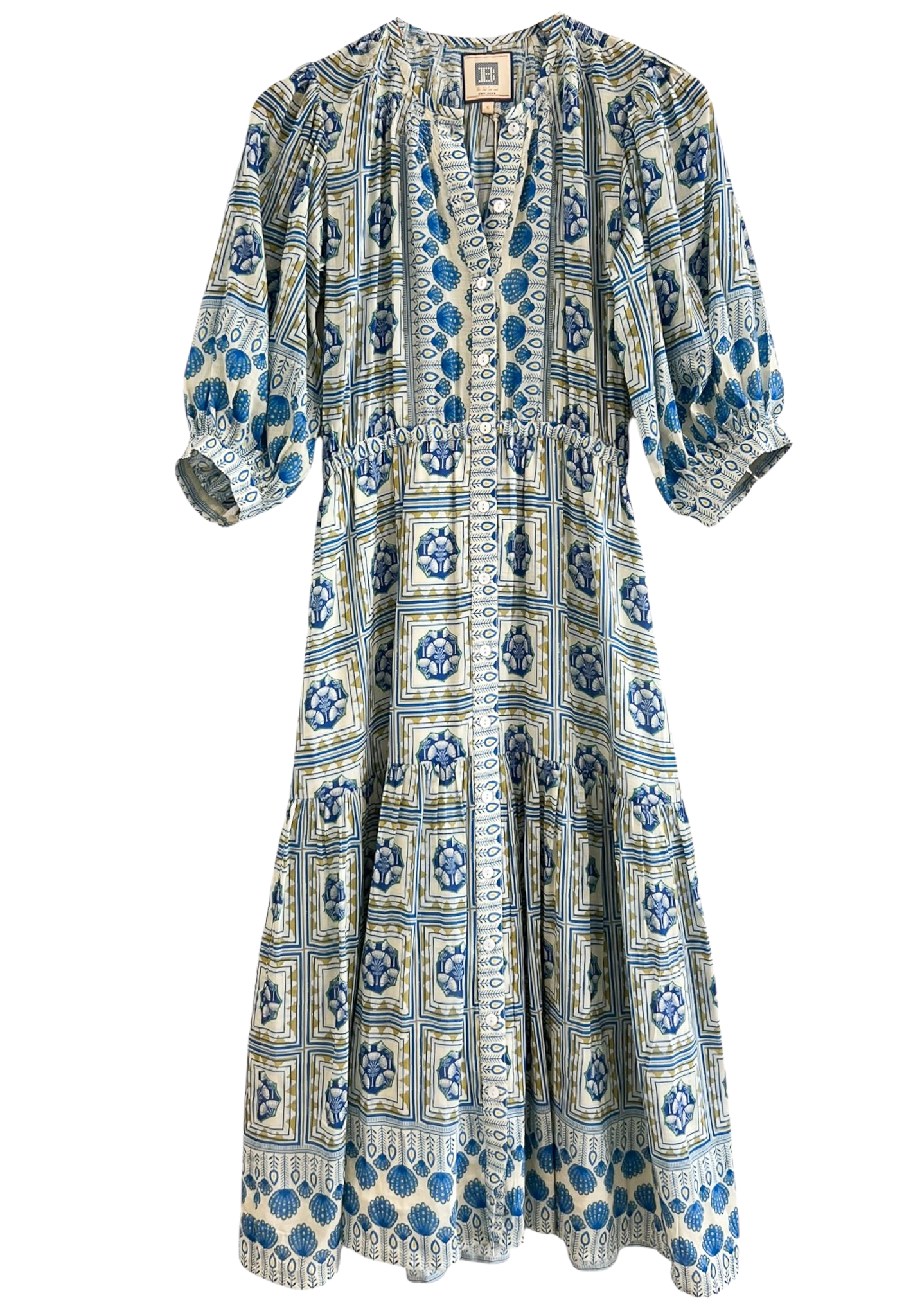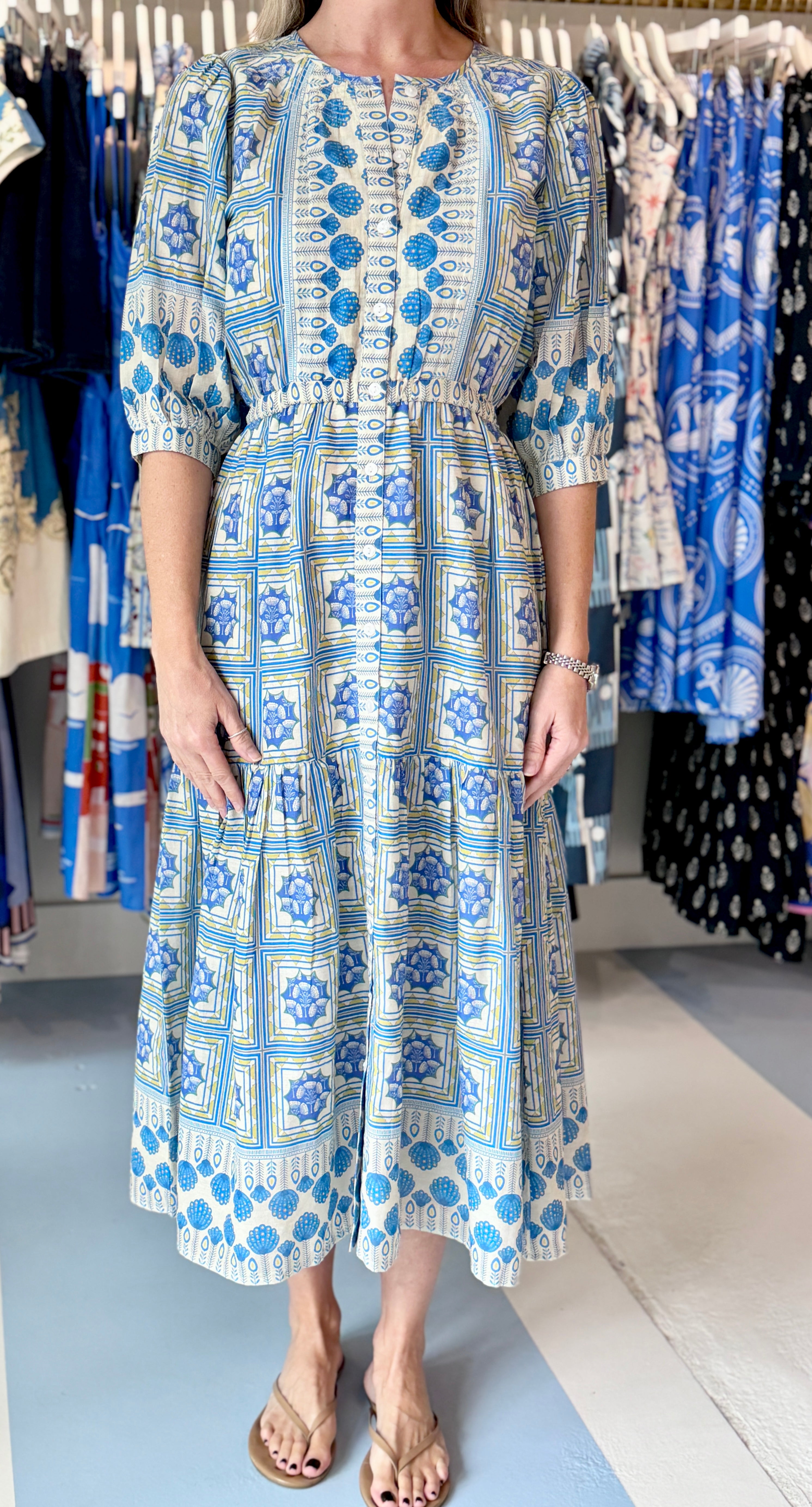 Bell Rosie Midi Dress, Blue Yellow Motif