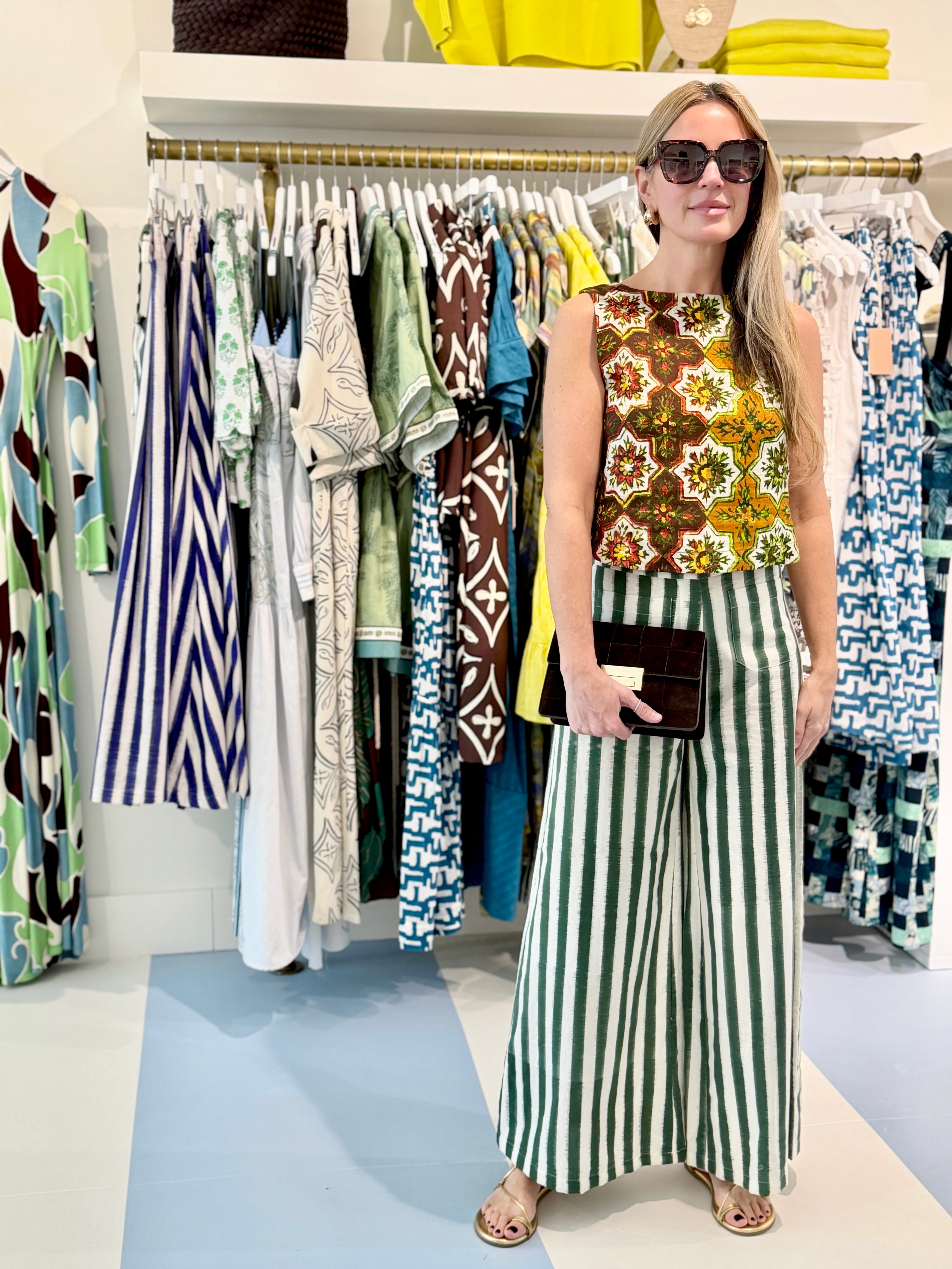 - Allambra recalls the intricate rhythm of sun-warmed tiles, its dense patchwork of retro browns, reds and mustard enlivening breezy Lenzing cottons.