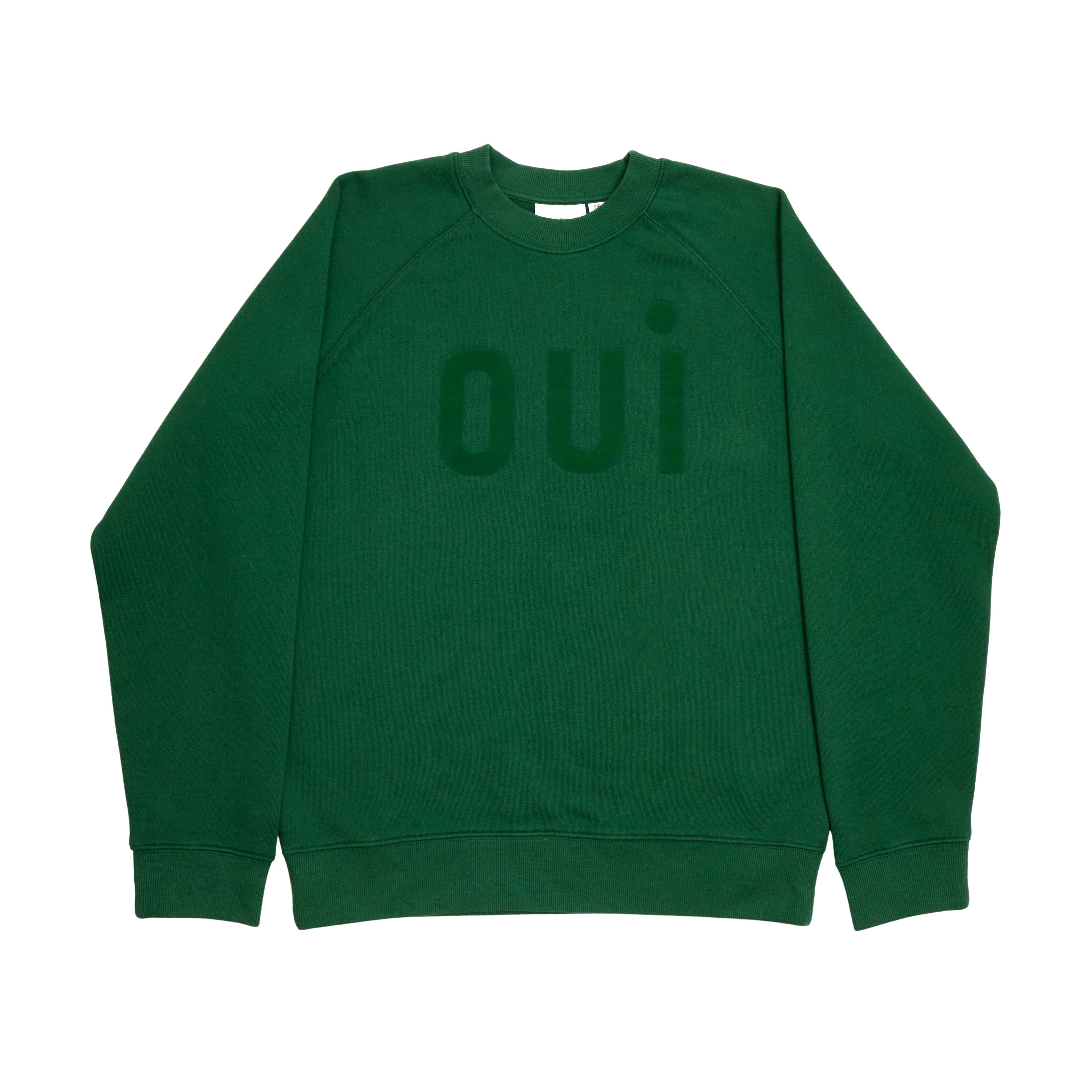 Clare V. Flocked Oui Sweatshirt, Evergreen